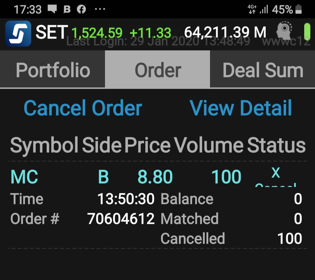 ทดลองซื้อหุ้นในมือถือ แต่ออกมาเป็นแบบนี้ ผมทำพลาดขั้นตอนไหนไปครับ ทั้งที่ผมไม่ได้กด ยกเลิก ทำไมถึงขึ้นว่า แคนเซิล ครับ