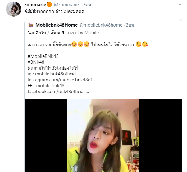 ซึ่งหลังจากคลิปออกไป เจ้าของเพลงอย่างส้ม มารี ก็มาทวิตชื่นชม และคอมเมนต์ไปยังไอจีของน้องด้วย