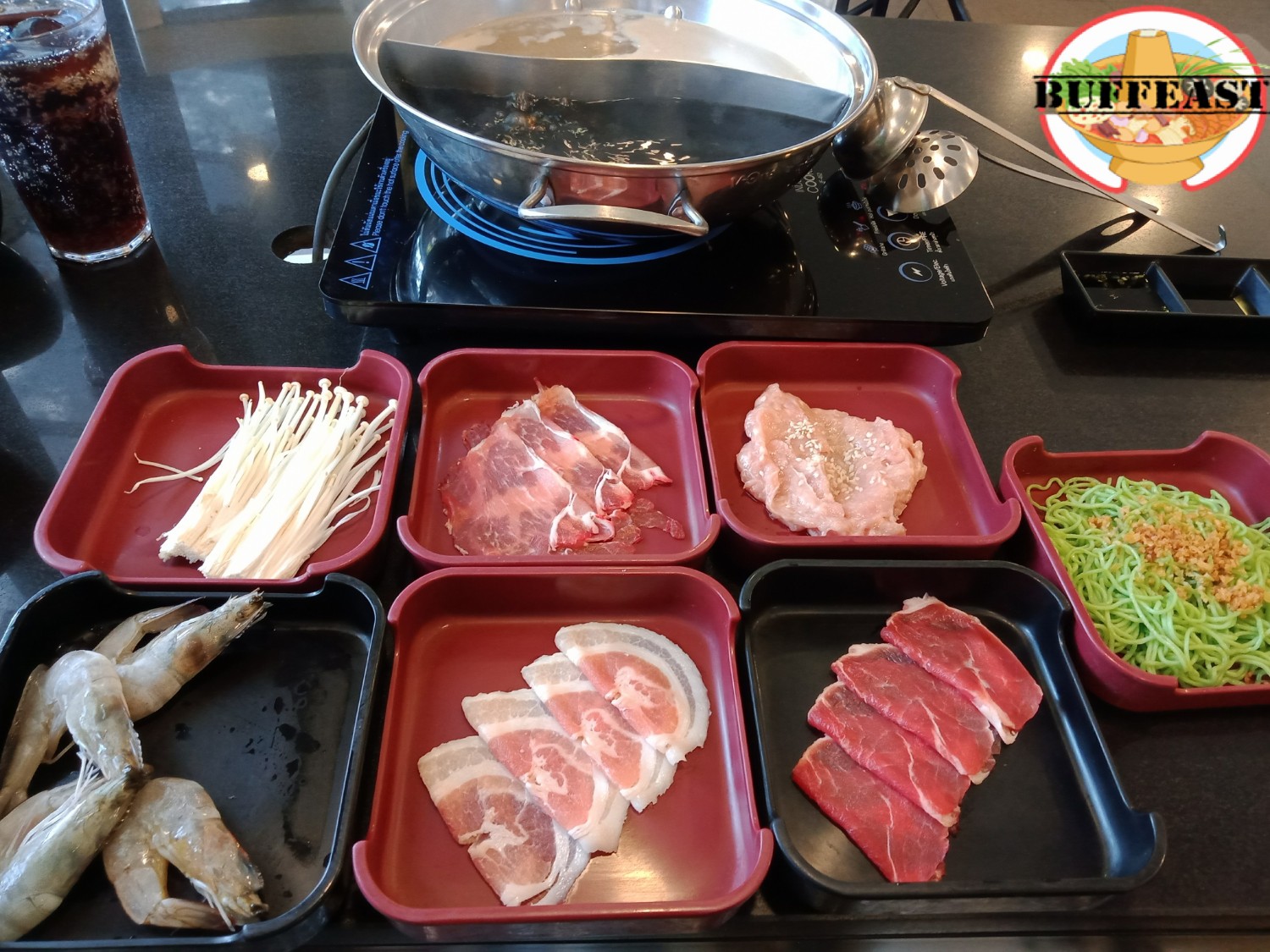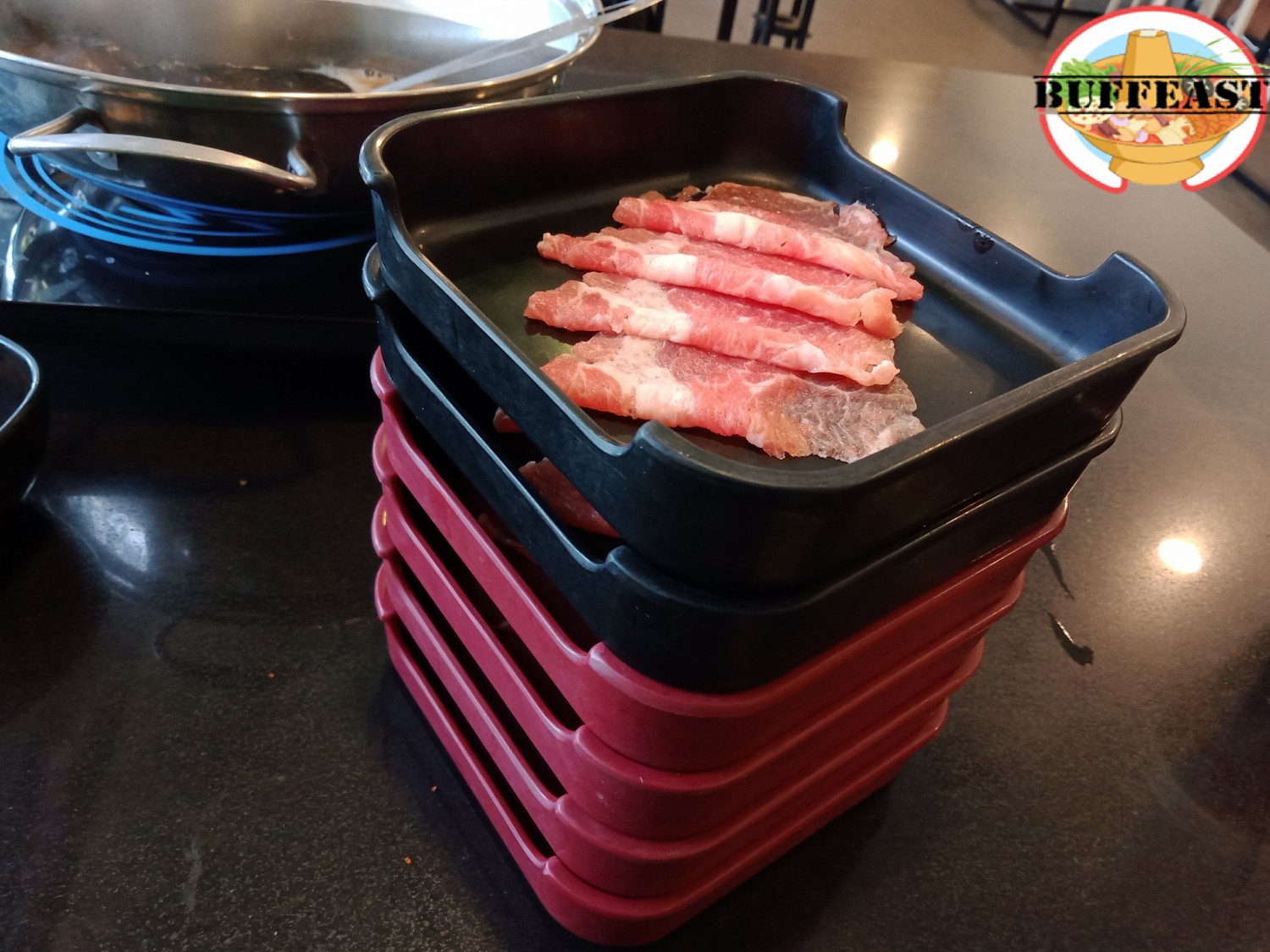 เนื้อดิบของที่นี่ค่อนข้างดีเลย โดยเฉพาะเนื้อวัวและสันคอหมู นิ่มเข้มเต็มรสชาติ ติดตรงที่บางถาดแช่เย็นนานจนเนื้อแห้งไปซะหมด