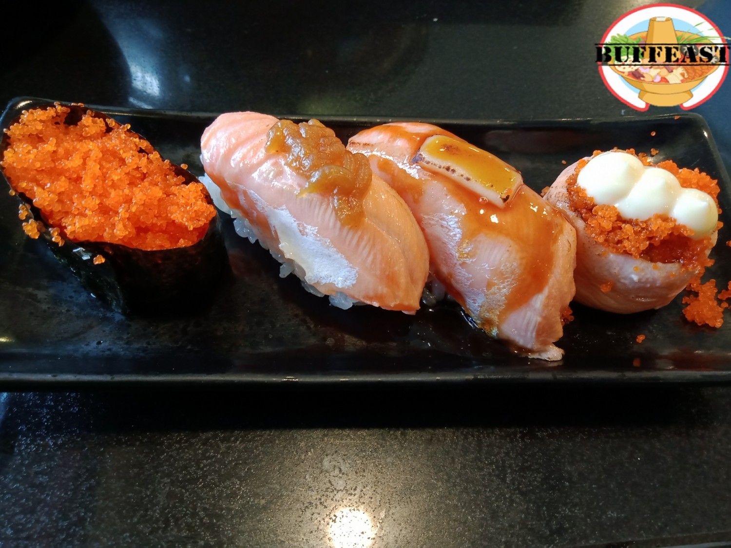 เช่น หมูสามชั้น ส่วนปลาดิบและข้าวปั้นทำได้โอเคตามมาตรฐานของร้านแนวๆนี้ ปลาแซลมอนไม่คาว หอมอร่อย เสียดายมันไม่เยอะเท่าร้านอื่น