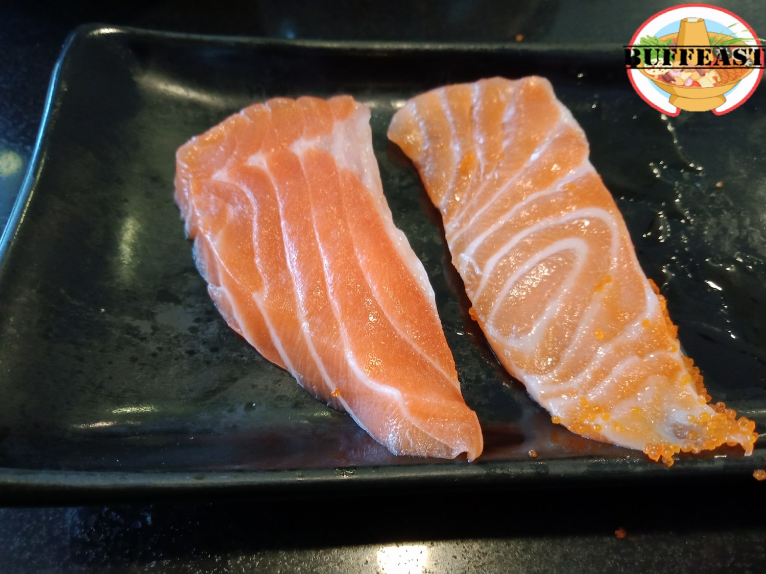 แซลมอนดิบ เนื้อสีเข้ม แต่รสไม่เข้มตาม รสชาติมันและนุ่มปาก บางเซตมันสวยอยู่ ตรงขอบค่อนข้างหนา ภาพรวมถือว่าใช้ได้เลยนะ