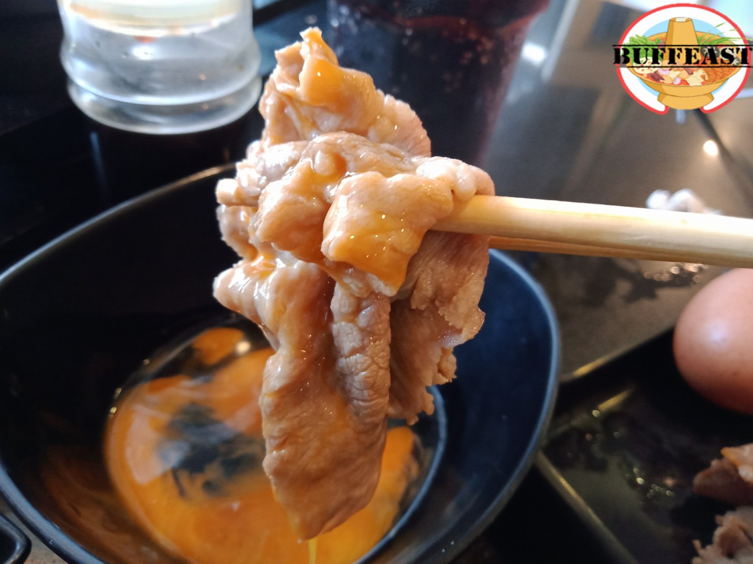 กินไปกินมา เนื้อส่วนที่อร่อยสุดก็คงหนีไม่พ้น สันคอหมู เนื้อนุ่มอร่อยฉ่ำดีเยี่ยม จุ่มกินกับไข่ดิบและซอสนี่แหละ อร่อยมากกกก