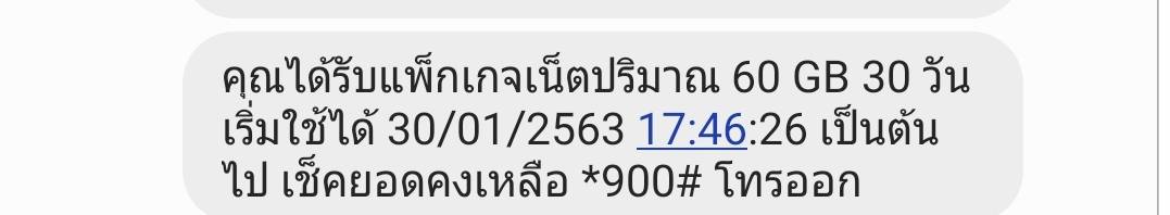 ผมเปิดใช้แล้วได้รับข้อความนี้ ช่วยเช็คให้หน่อยว่า เบอร์ของผมใช้เน็ต 60 GB ได้ 1 เดือน