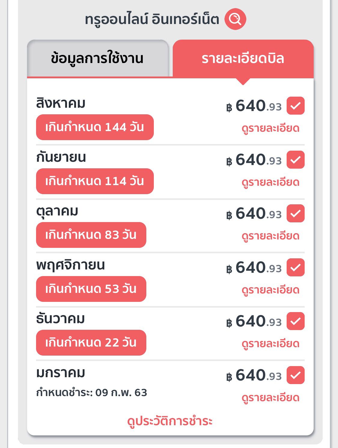ใช้บริการเน็ตบ้านทรู มียอดค้าง2เดือน