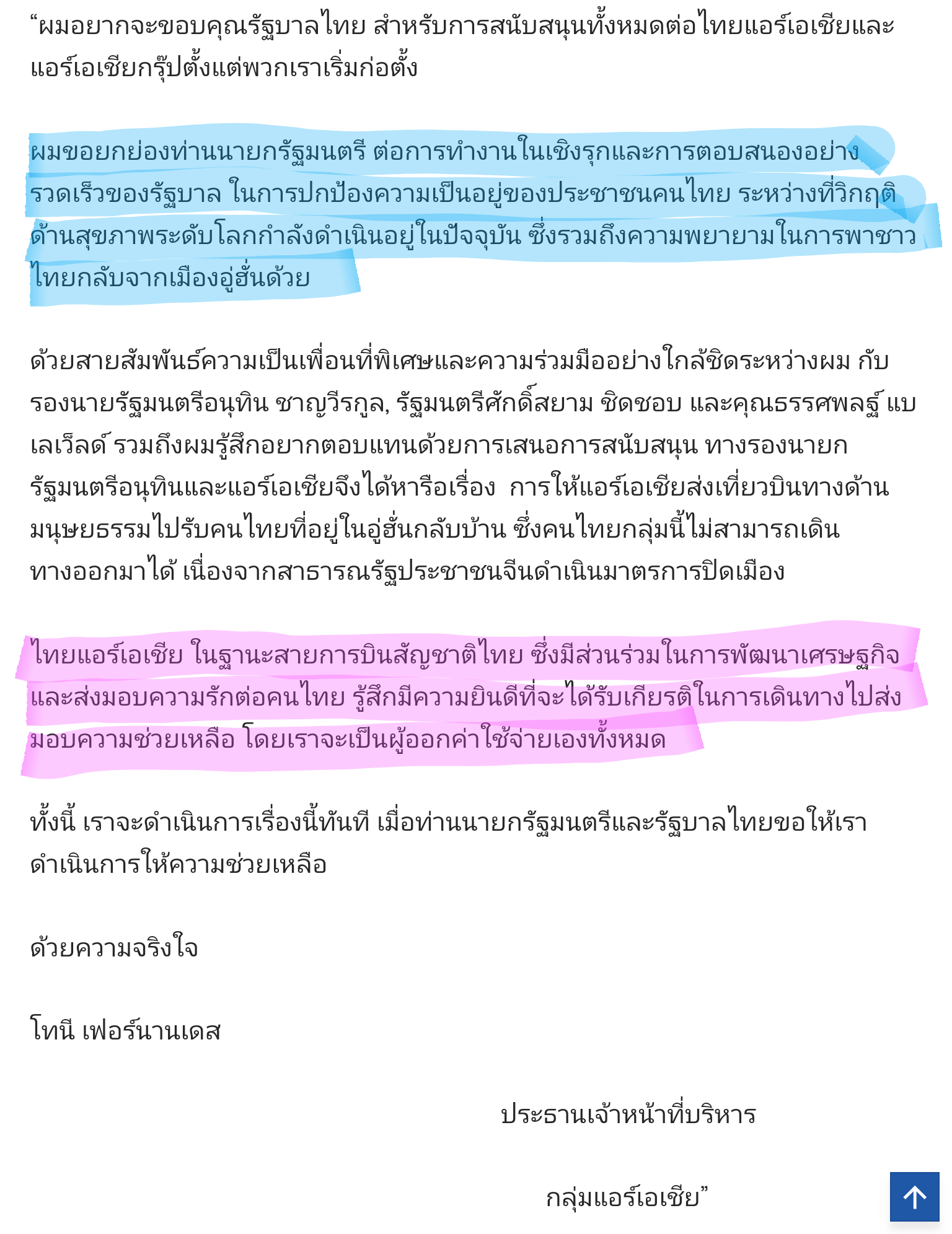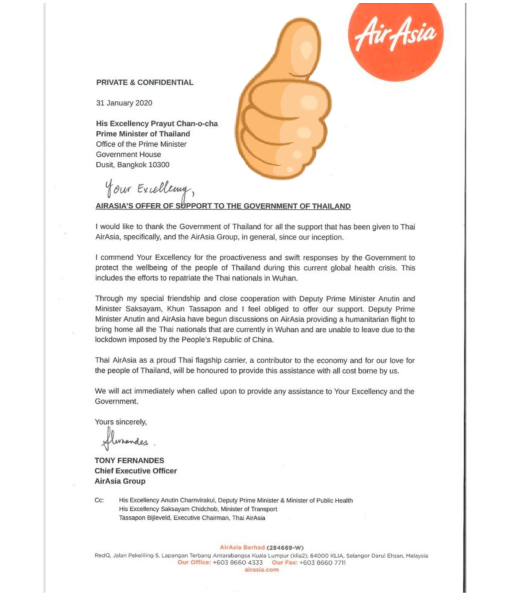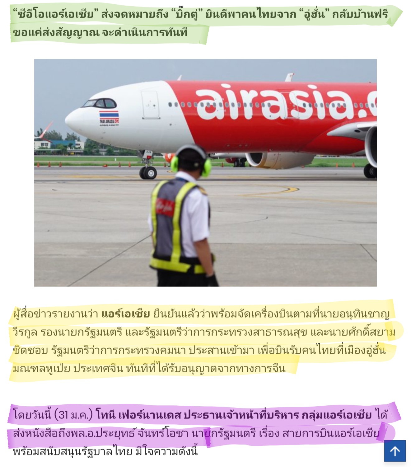 💍มาลาริน/เอ้า..เฮ! จีนเคาะคิวให้ไทยบินรับคนไทยกลับประเทศแล้ว แอร์เอเชียบริการฟรี ซีอีโอส่งจม.ถึงลุงตู่ด้วยความซาบซึ้ง