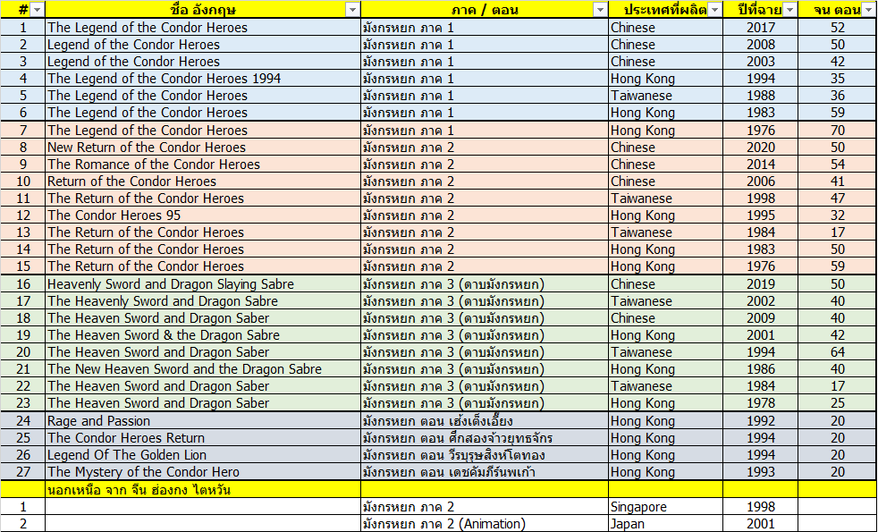 ซีรีย์ มังกรหยก / ดาบมังกรหยก / ปีที่ฉาย ประเทศที่ผลิต ภาคที่ 1/2/3 + ภาคพิเศษ มาดูกันว่า ผลิตมากี่รอบแล้ว