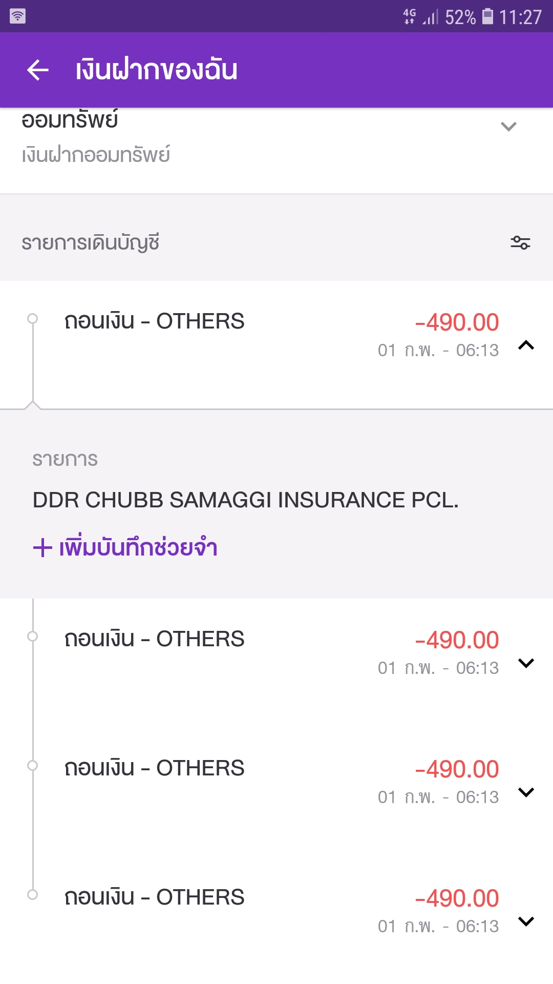 ผมพึ่งโดนหักจากบัญชีไทยพาณิชย์ไป 490 บาท วันเดียว 4ครั้งเลย