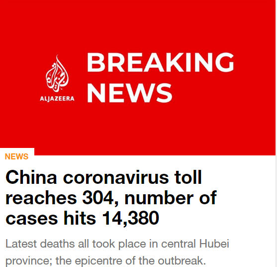 02/02/2020 ...........ยอดผู้เสียชีวิต 304 ...........ผู้ป่วย เพิ่มเป็น 14551 .................เฝ้าระวัง .... เอา 2 คูณ จำนวนผู้ป่วย คร่าวๆ
