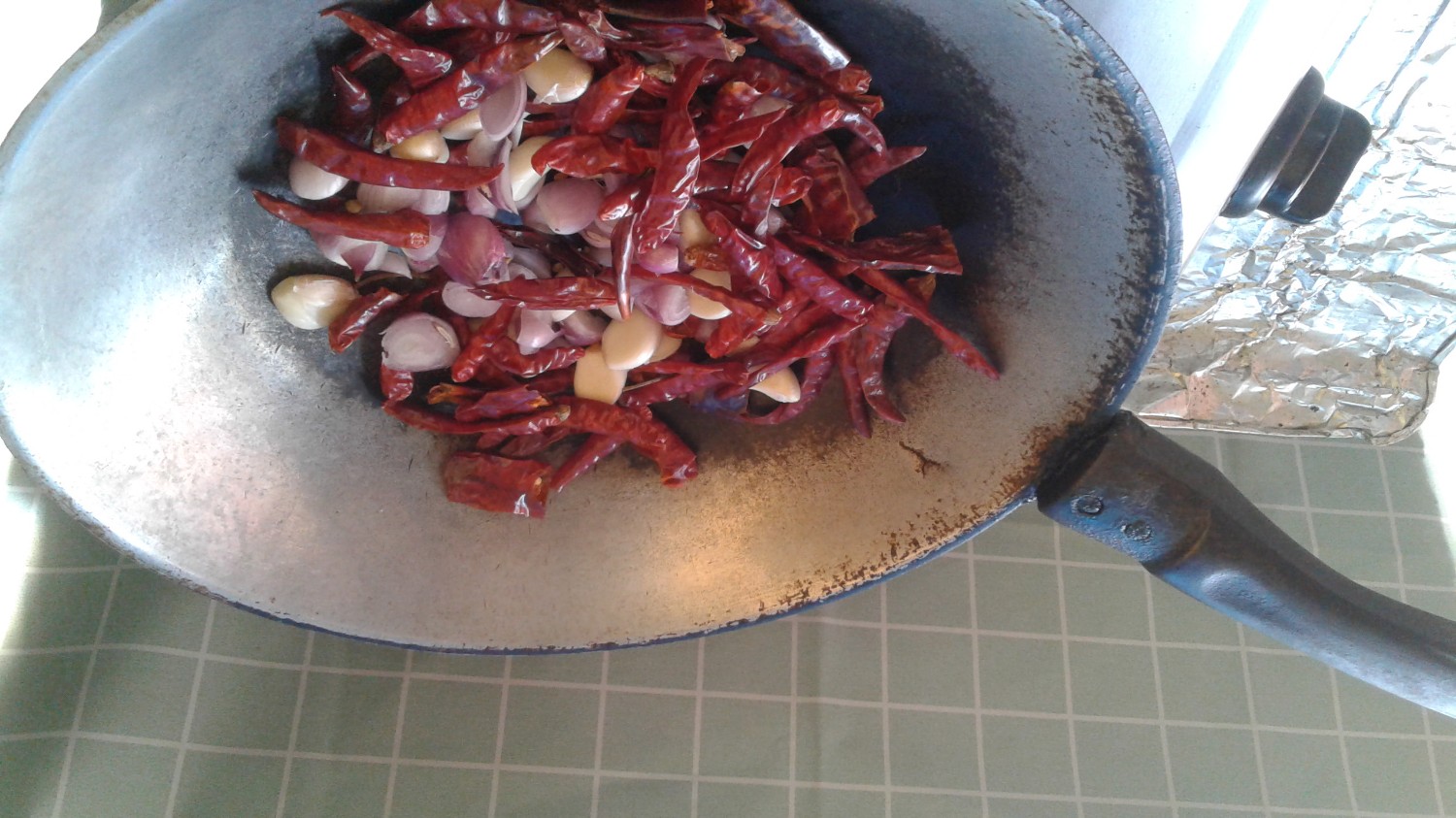 พริกแห้งหอมแดงกระเทียมเอาไปคั่วพร้อมกันพอเหลืองนำไปตำให้ละเอียดพอละเอียดดีแล้วเอาไปผัดกับน้ำมันใส่น้ำตาลทรายน้ำมะขามเปียกผงชูรสแล้วก็เกลือชิมรสตามใจชอบของเราใครไม่ชอบหวานก็ไม่ต้องใส่น้ำตาลนะคะสุดท้ายใส่กุ้งแห้งฝอยคนให้เข้ากันใช้ได้ยกลงตักใส่ภาชนะไว้ค่ะใส่ตู้เย็นเก็บไว้ทานค่ะคลิปเต็ม👇