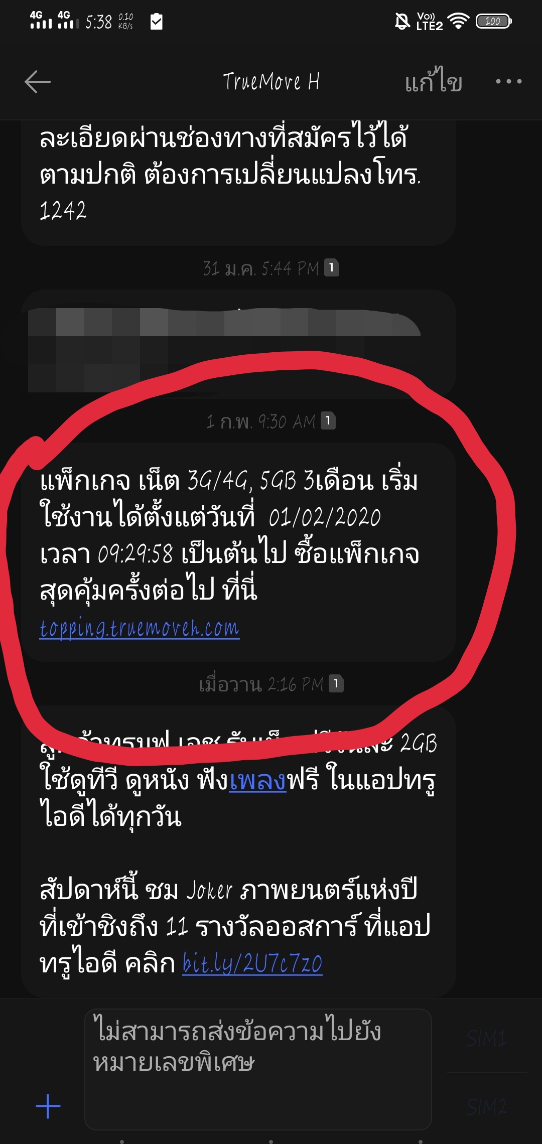 ของทรูมูฟเอช เติมเงินเพื่อตัดแพคเกจเนต ซึ่งตัดได้ปกติมาตลอด และไม่มีข้อความมาบอกว่าจะสิ้นสุดถ้าไม่สามารถตัดเงินได้ พอดีเมื่อคืนลืมเติมไว้ทำให้ระบบตัดไม่ได้ ตื่นมาเข้าห้องน้ำตอนตีสามกว่าๆเลยเห็นข้อความ
