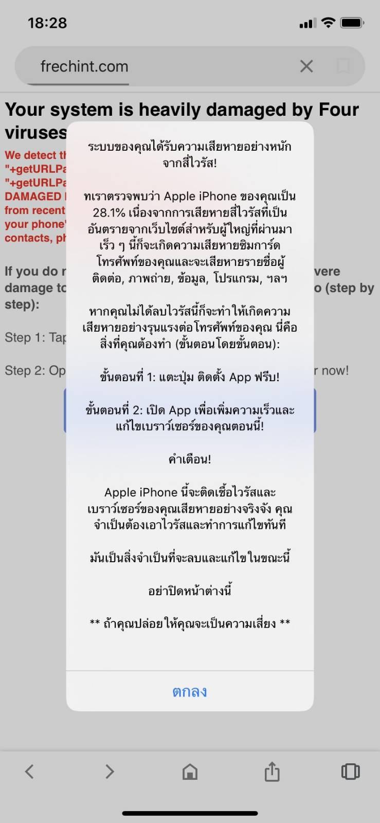 มันขึ้นว่า Apple iphone ของคุณได้รับความเสียหายอย่างรุนแรงจากไวรัส9 ควรทำยังไงครับ แล้วลบไวรัสพวกนี้ยังไงที่ไม่ต้องเสียค่าใช้จ่ายครับ ใครรู้บอกหน่อยครับ ขอบคุณครับ