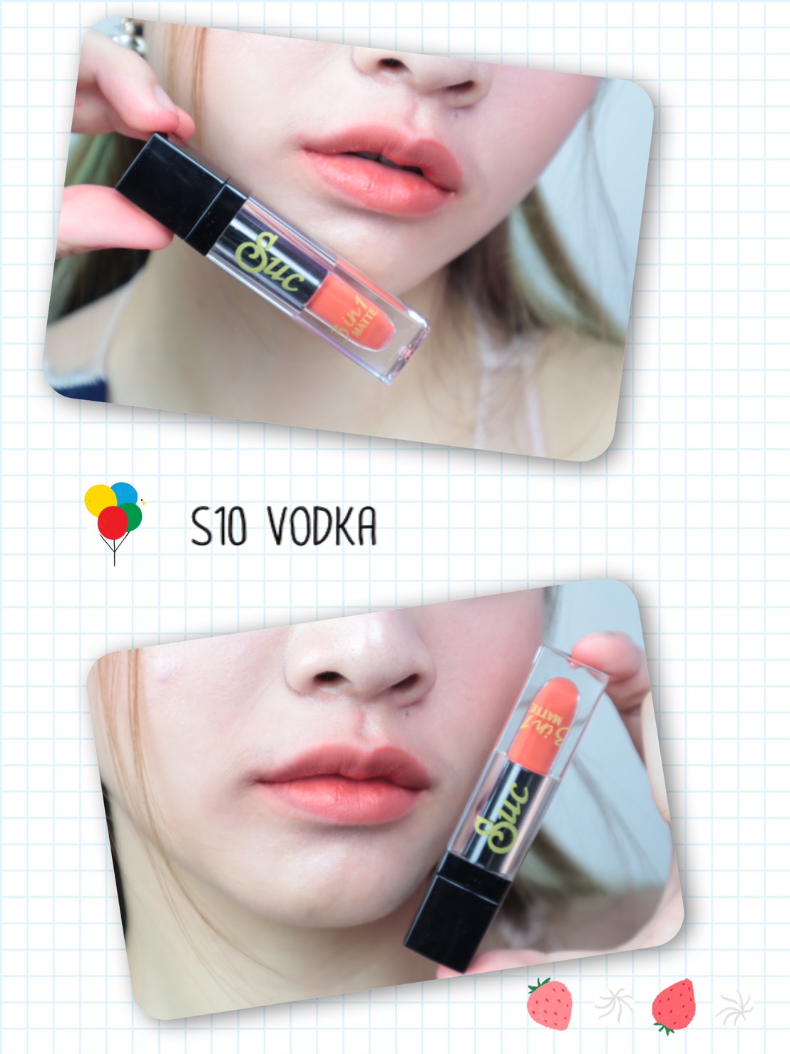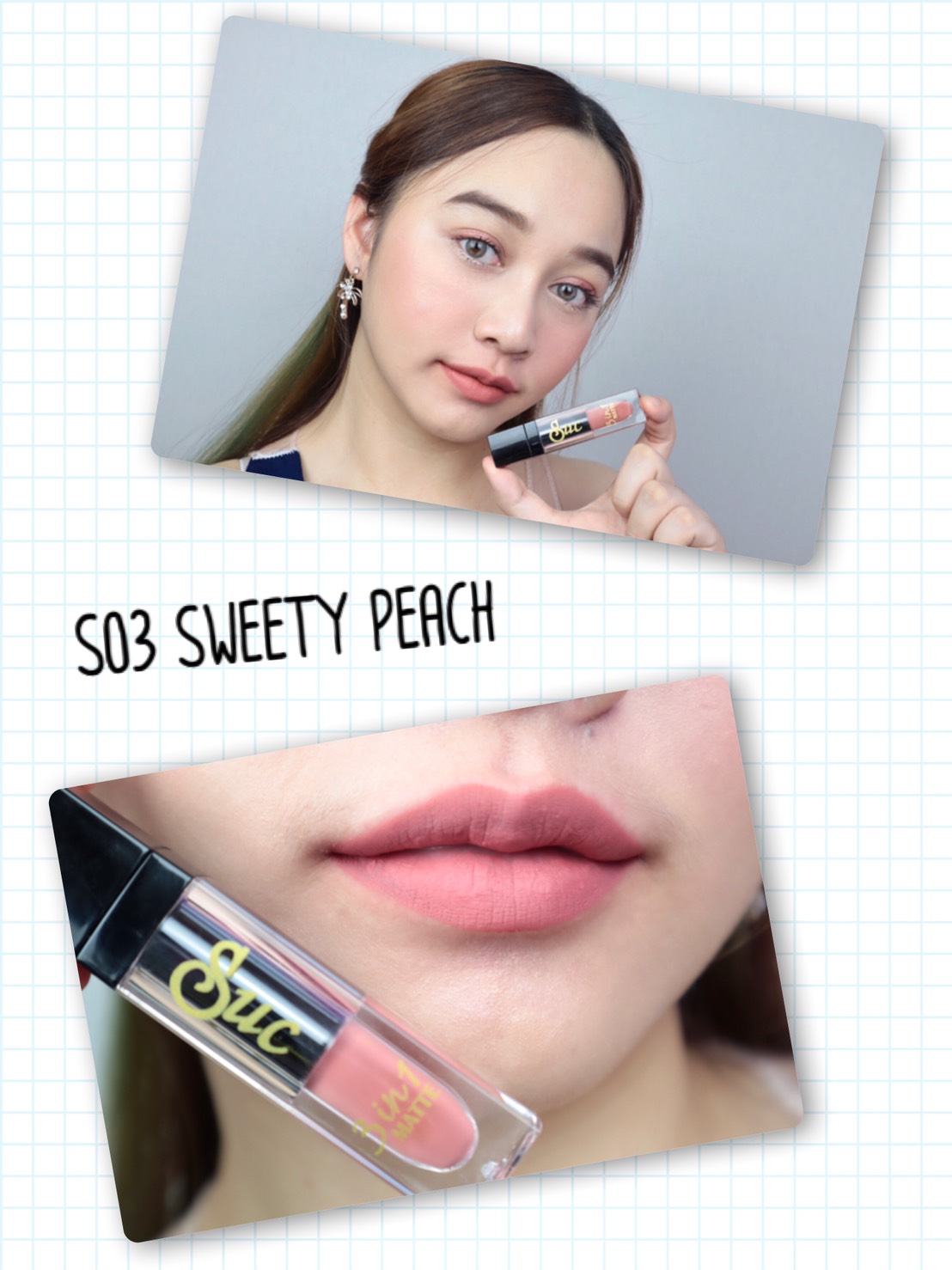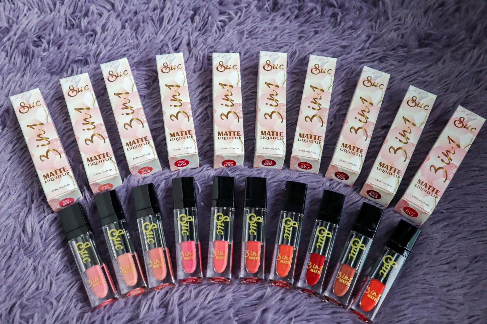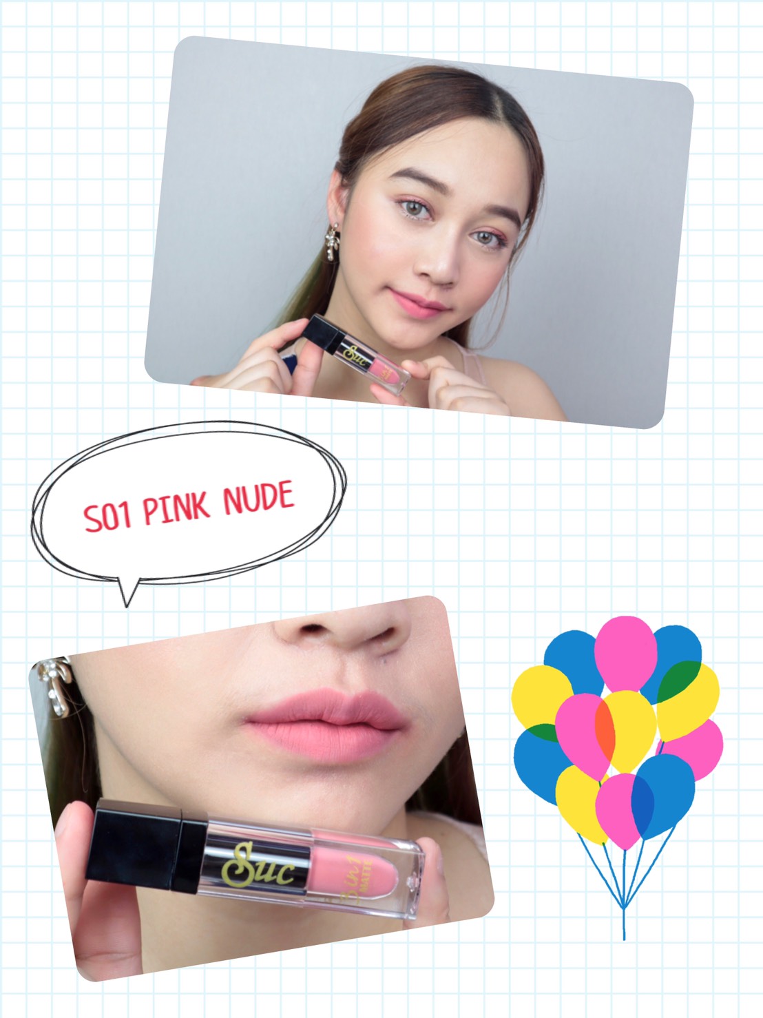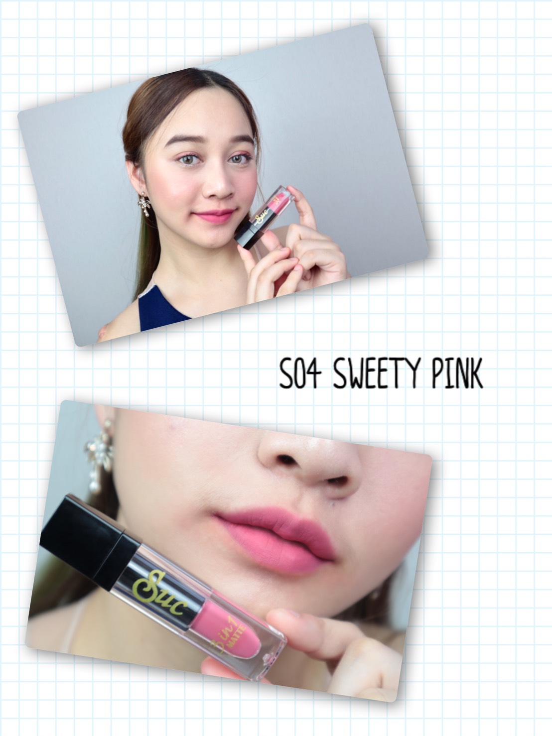 SUC 3 IN 1 MATTE LIQUID LIP เป็นลิควิดลิปเนื้อแมท สีของเขาจะออกโทนชมพูๆ บ่นส้ม อมแดง บอกเลยว่าแต่ละสีคือสวยมากและที่ยังสามารถเอาปัดแก้มและแต่งตาได้อีกด้วย