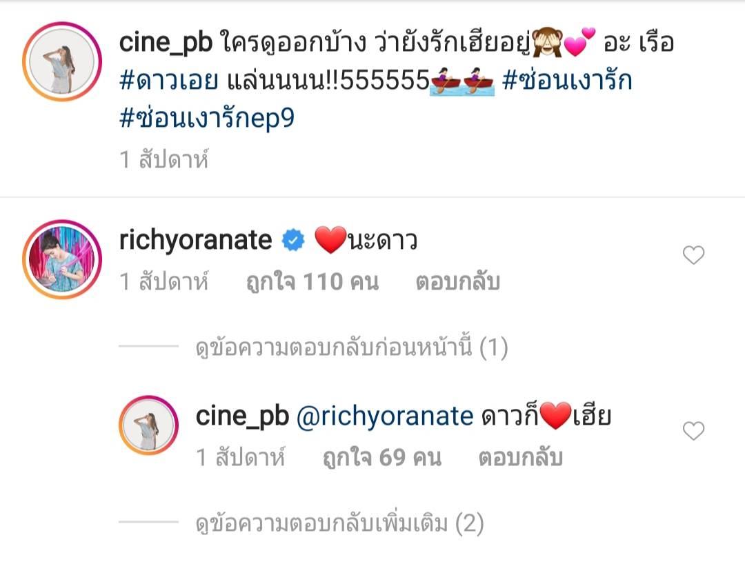 ซีน ที่เล่นเป็นดาวก็ตอบโต้กับริชชี่ในไอจีด้วยรูปหัวใจให้