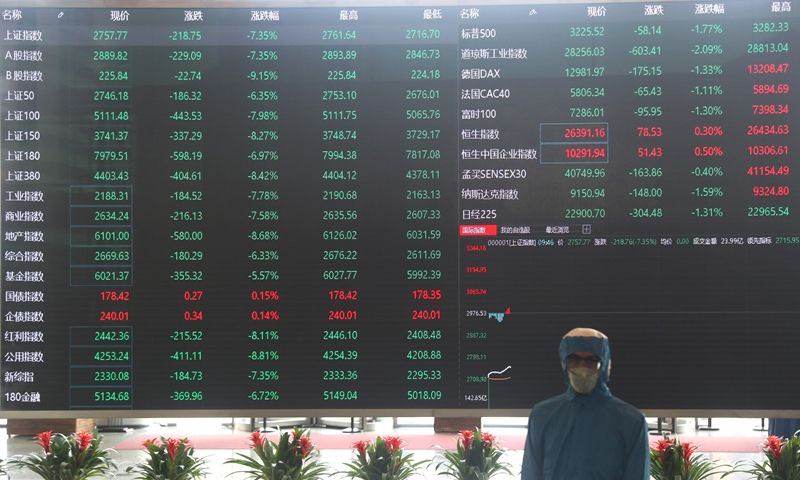 ยืนใส่แมสหน้ากากท่ามกลางหุ้นในกระดานเขียว