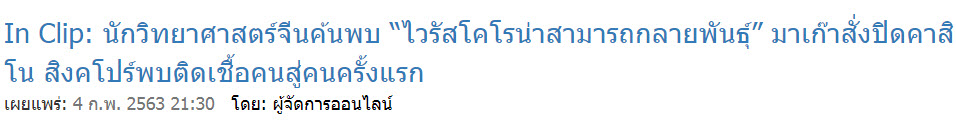 ไวรัสโคโรน่า/อู่ฮั่น อาจจะมีการกลายพันธุ์ จากความเห็นของคณะนักวิทยาศาสตร์จีน