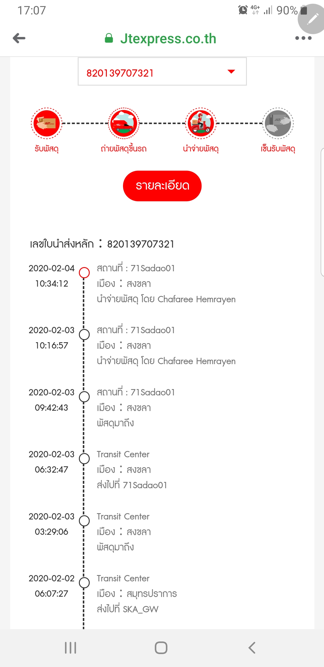 คือวันนี้เป็นวันที่3ได้แล้วค่าที่ยังไม่ได้รับพัสดุโทรไปแรกๆติดไม่รับ แล้วค่อยมีกากลับมาสั1สายา1ครั้ง คือรอก้อเกอะทั้งวันก็ไม่มมีรอแค่พัสดุกล่องเดียว หลังทั้งโทรสาขาและขนส่งโทรไปก็ตัดสายเราทิ้งตลอดเลยค