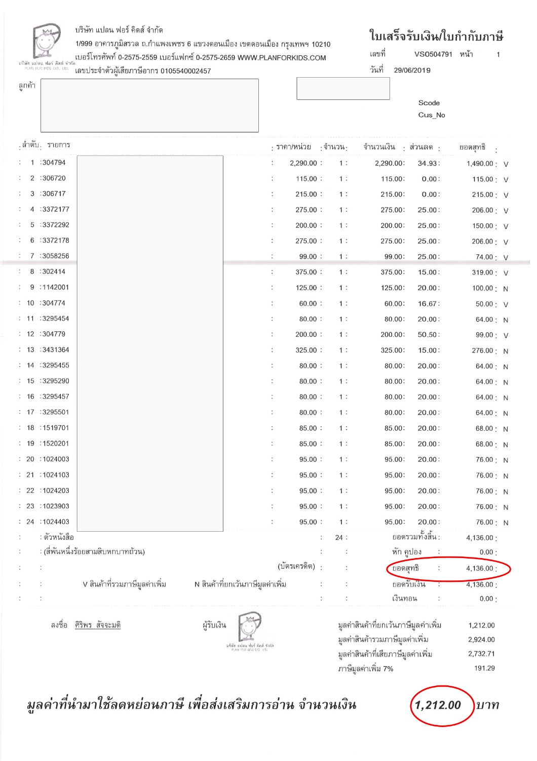 ซื้อไปทั้งหมด 4,136 บาท แต่ท้ายใบเสร็จระบุมูลค่าลดหย่อนภาษี 1,212 บาทค่ะ