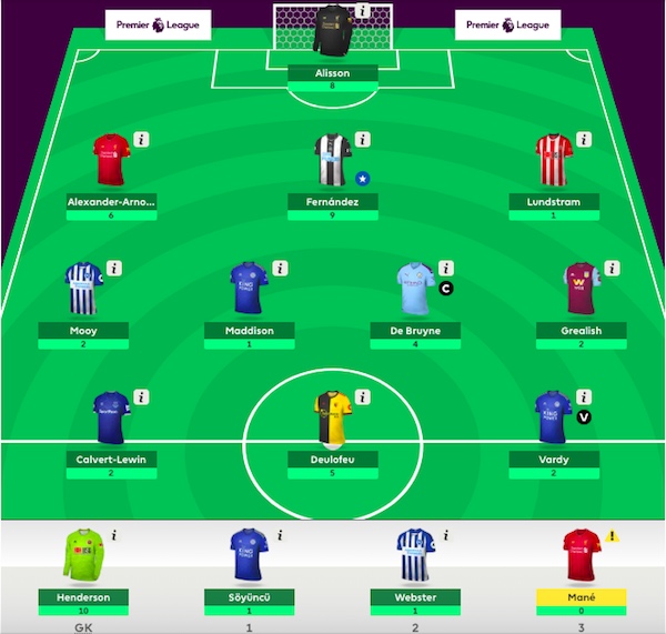 หลังจากตัดสินใจเก็บมาเน่ไว้กับทีม ทำให้พลาดขบวนผ้าป่าซาล่าห์ไปโดยปริยาย ยิ่งการเลือกกัปตันเด บรอยน์ ซึ่งจนแล้วจนรอดก็ทำคะแนนไม่ได้ซักที คะแนนก็เลยเหวี่ยง ทำให้อันดับตกรูดลงมาอย่างที่เห็น