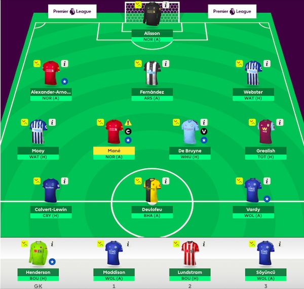หรือถ้าเราเลือกจะเสี่ยงกับมาเน่ ตัวที่เริ่มตำแหน่งไม่แน่นอน หรือฟอร์มตะกุกตะกักอย่าง ลุนด์สตรัม, โซยุนคู, แมดดิสัน, วาร์ดี้ ก็ถือว่าน่าเปลี่ยนออก โดยมีแคนดิเดทเป็นฆิมิเนซ, อิงส์, ซน, อัลลี่ หรือของใหม่มาแรงอย่างเบิร์กไวจ์