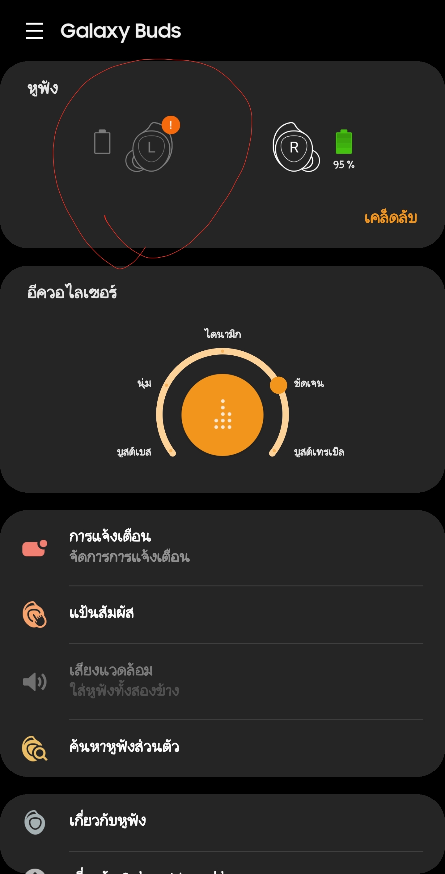 Samsung Galaxy Bud+ข้างขวาไม่มีเปอร์เซนต์แบต