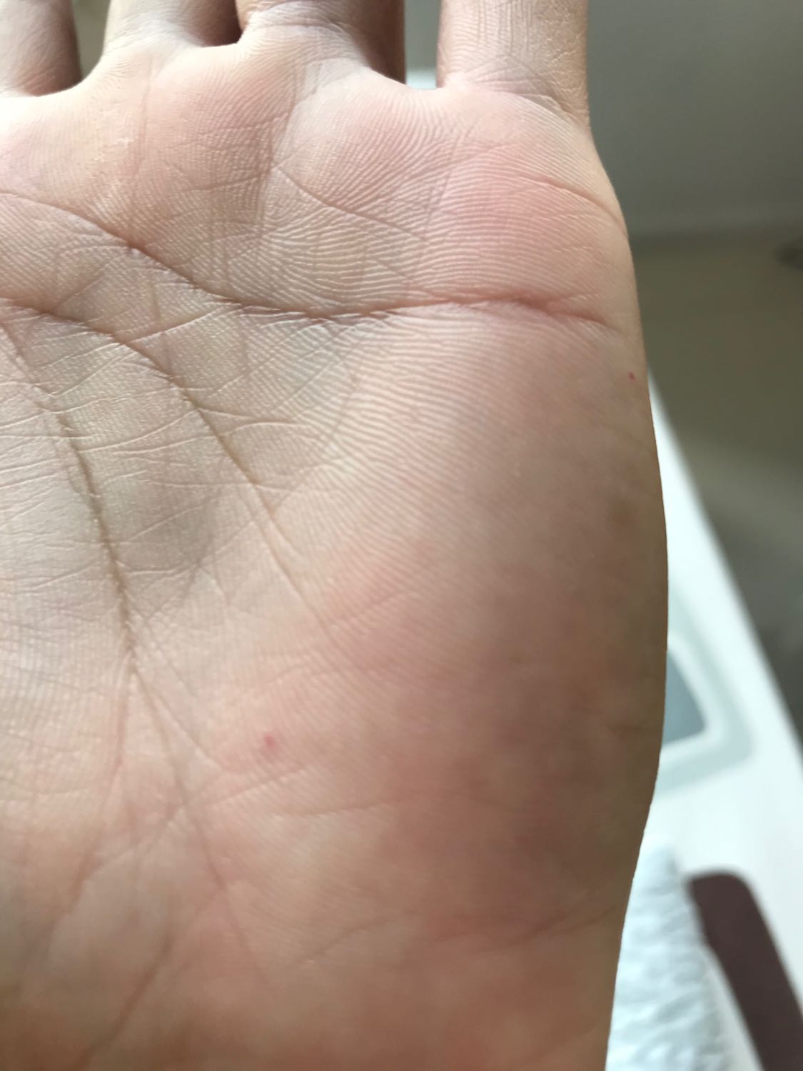 อยากทราบว่าจุดแดงสองจุดบนมือหมายถึงอะไร