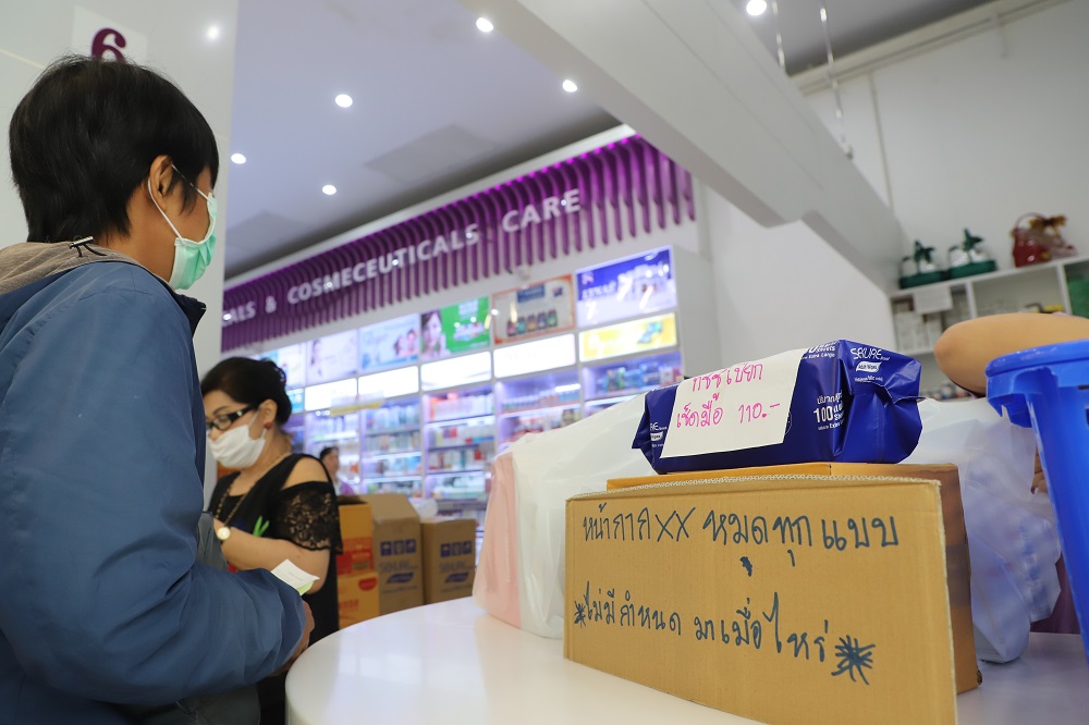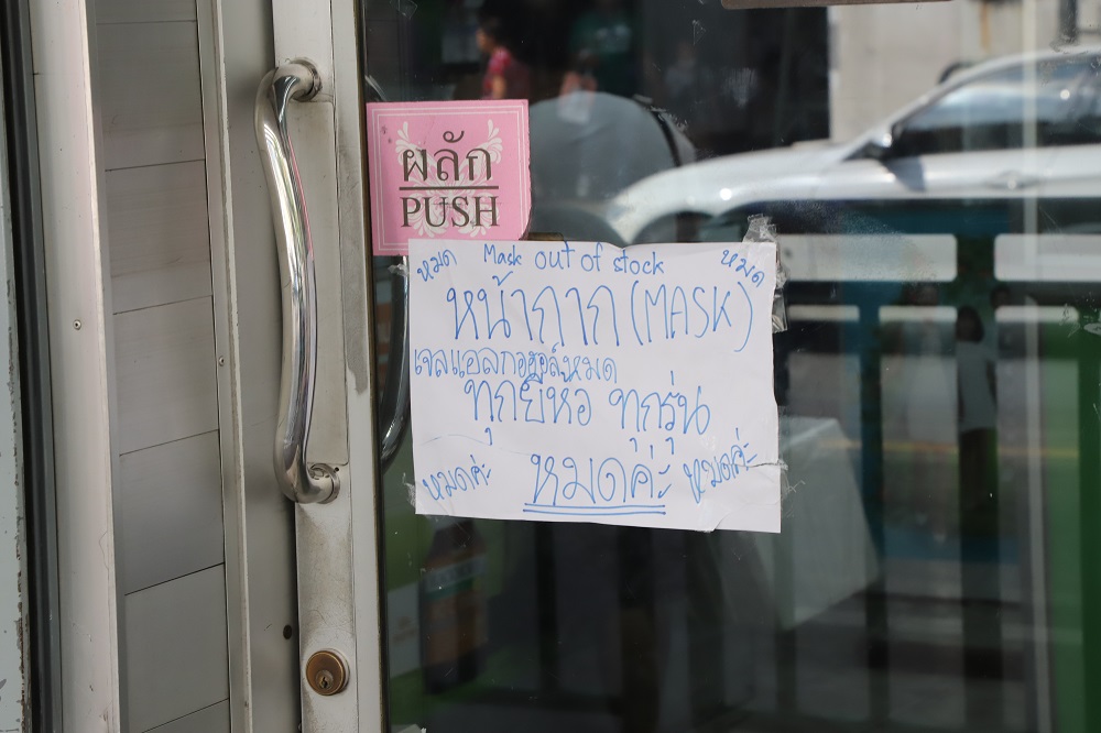 ผู้สื่อข่าวรายงานว่า วันนี้ (5 กุมภาพันธ์ 2563) ร้านขายยา เวชภัณฑ์ ในห้างสรรพสินค้า และบริเวณหน้าโรงพยาบาลศิริราช ได้ติดประกาศ ว่า “หน้ากากอนามัย หมด” และ “เจลล้างมือ หมด” ไม่มีจำหน่ายเกือบทุกร้าน