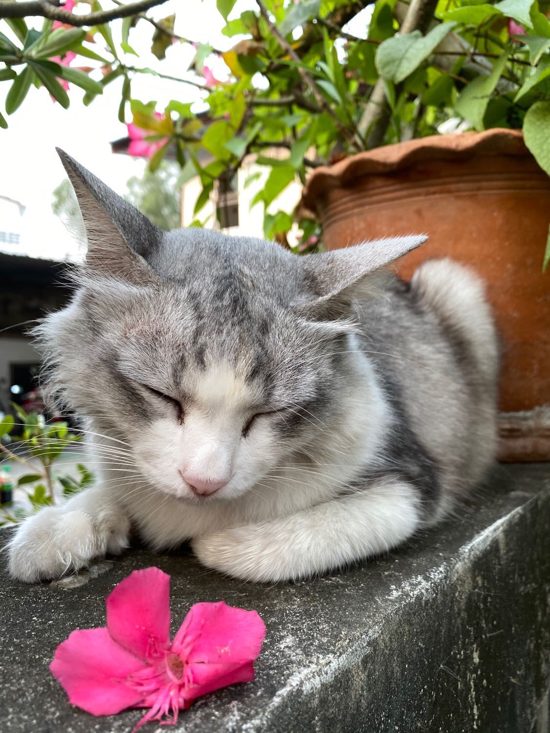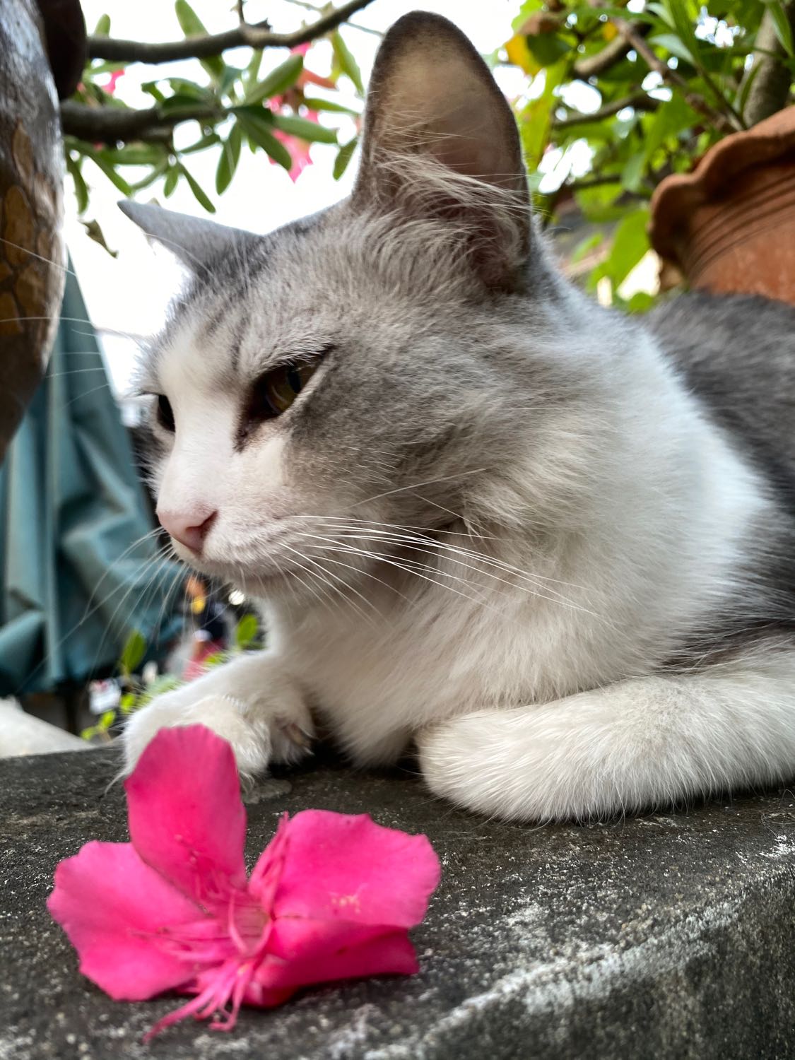 เราเคยเลี้ยงแมวมาหลายตัว มีตัวนี้ที่มาใหม่ เป็นแมวจร แต่แวะมาบ้านทุกวัน เวลาเค้าเห็นเราเค้าจะวิ่งปรี่เข้ามา แล้วมาคลอเคลียขากับเท้าเรานานมาก เดินไปไหนก็จะตามไปด