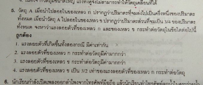 วอนผู้รู้ช่วยตอบทีค่ะ ในคีย์ไม่ค่อยชัดเจนเท่าไหร่(โจทย์แรงลอยตัว)คือเราได้ทำคำถามท้ายบทมาค่ะ เราก็ดูคีย์และพยายามทำความเข้าใจไปด้วย แต่ก็ไม่ออกสักที่ค่ะ วอนช่วยอธิบายให้เด็กน้อยคนนี้เข้าใจทีเถอะ https