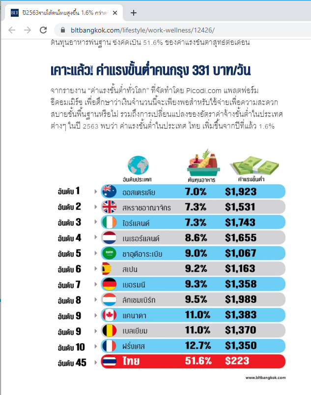 สงสัยครับ ทำไมอาหารไทยแพง ในขณะที่ค่าแรงขั้นต่ำของไทยยังต่ำครับ
