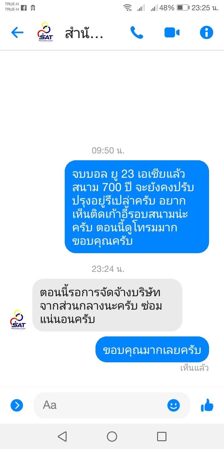บอลยู 23 ผ่านไปแล้ว กกท จะยังปรับปรุงสนาม 700 ปีต่ออยู่รึเปล่าครับ??