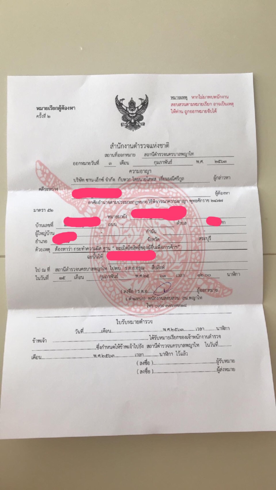 เราขายของออนไลน์ค่ะ โดนหมายเรียกแบบนี้ ต้องทำไงบ้างค่ะ