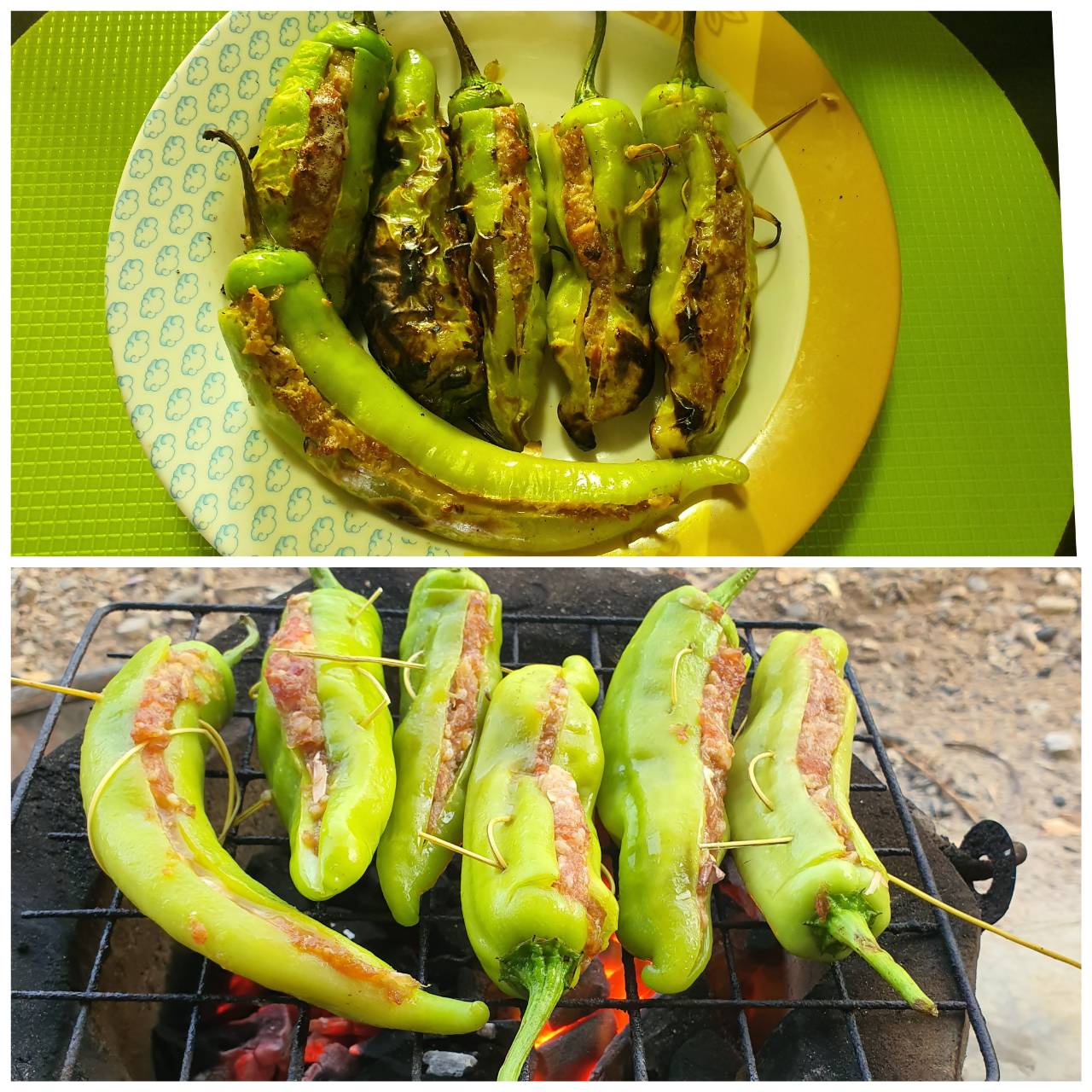 ไปเดินตลาด เจอพริกหนุ่มอวบๆ เลยนึกขึ้นได้ หมูบดปรุงรส ยัดไส้พริกหนุ่ม ปิ้งด้วยเตาถ่าน หอมๆๆ