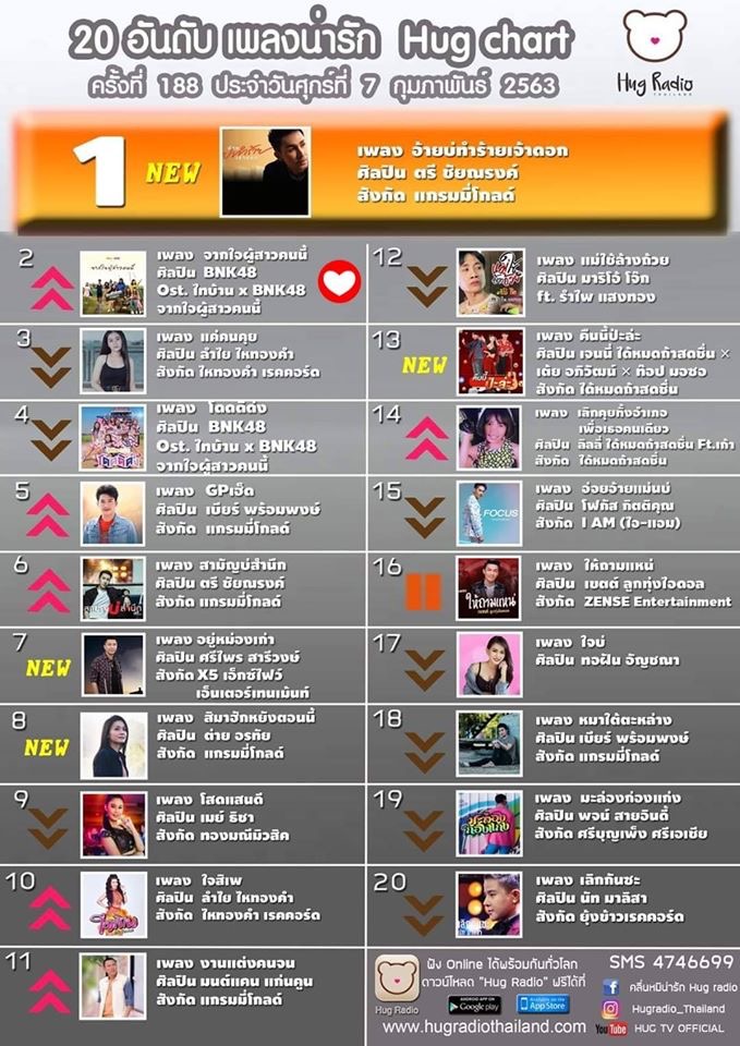 เพลง”จากใจผู้สาวคนนี้”ติดอันดับเพลงฮิตNew Entry ประจำอาทิตย์นี้