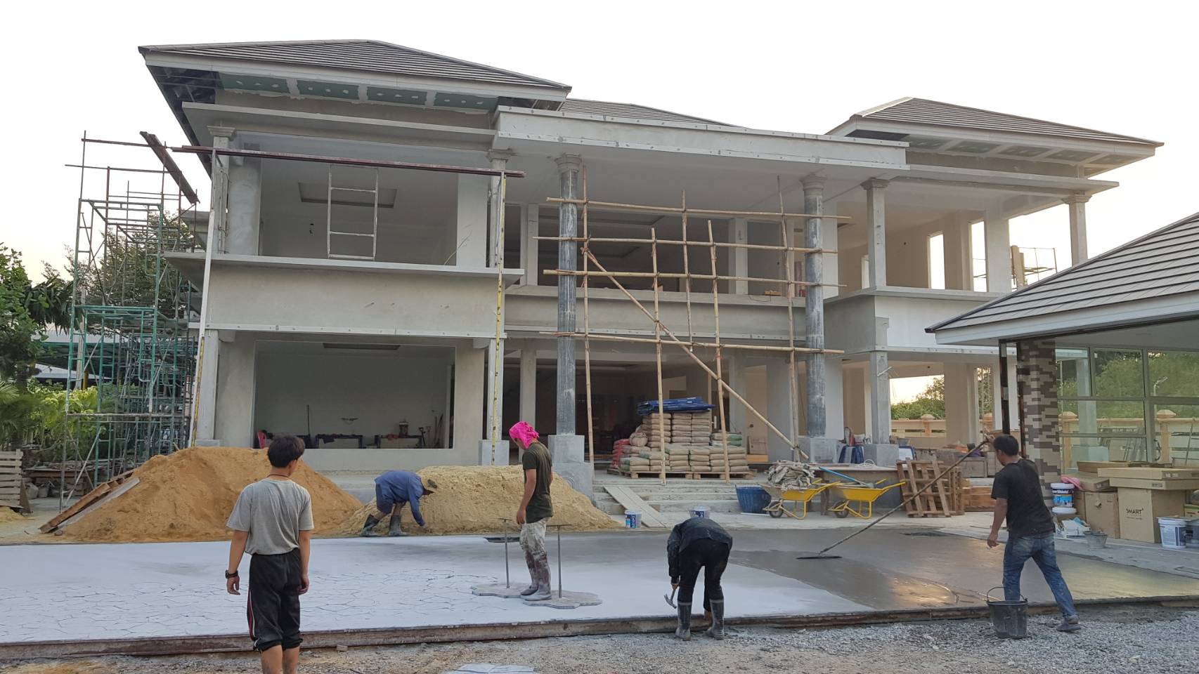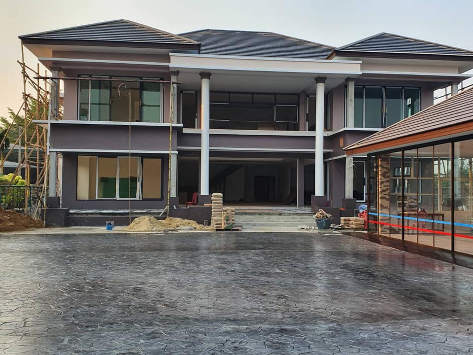 ตัวบ้านยังไม่เสร็จ ทำพื้นหน้าบ้านก่อนซะงั้น...คุณพ่อใจร้อน ใช้พื้นปูนซีเมนซ์พิมพ์ลาย ...
