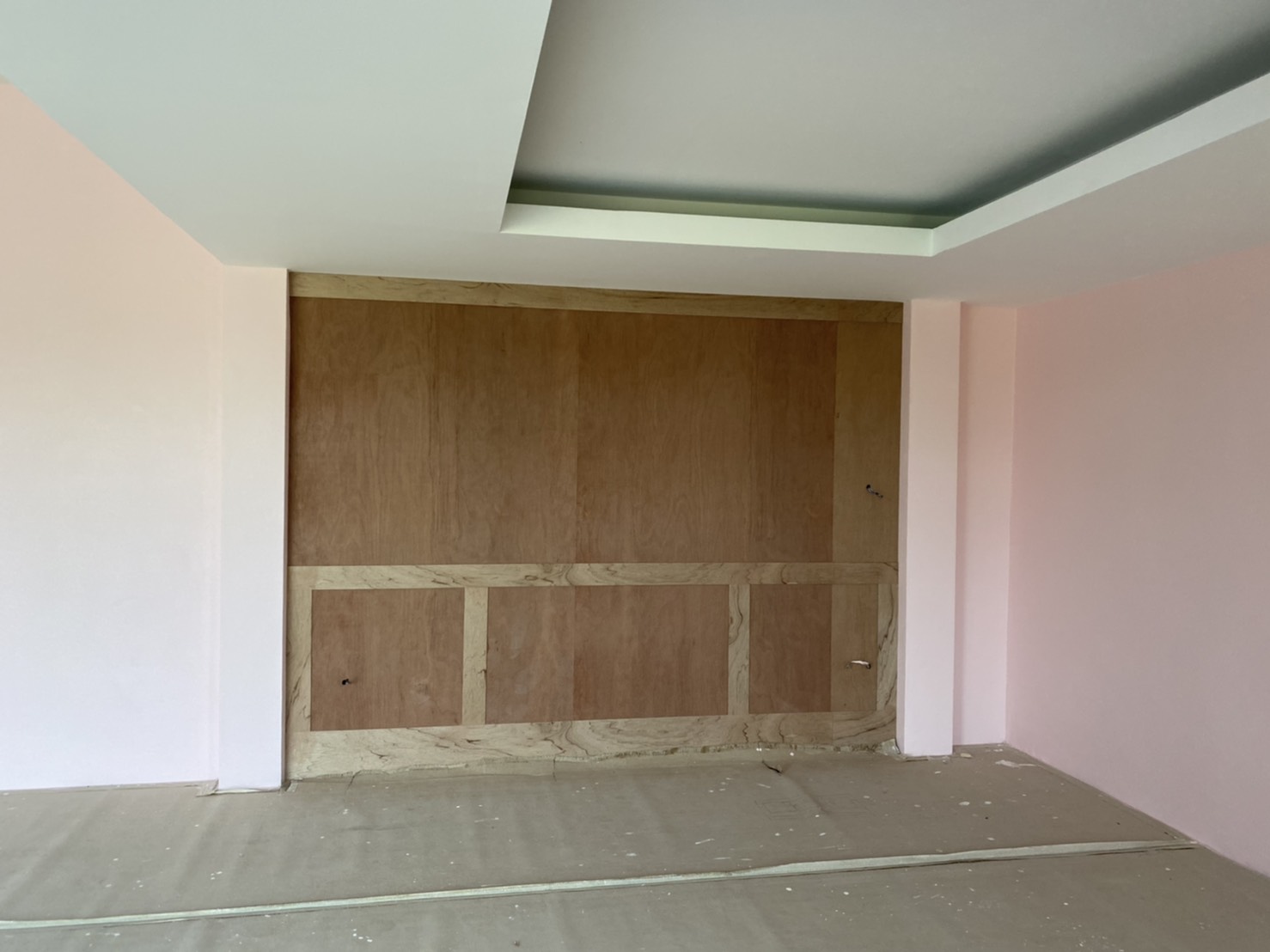 เริ่มจากห้องโฮมเธียร์เตอร์ กำลังตกแต่งผนัง ซึ่งด้านหลังผนังปูนนี้ทางเราได้ทำซับกันเสียงไว้เรียบร้อยแล้ว