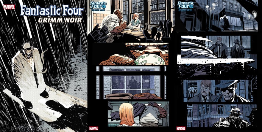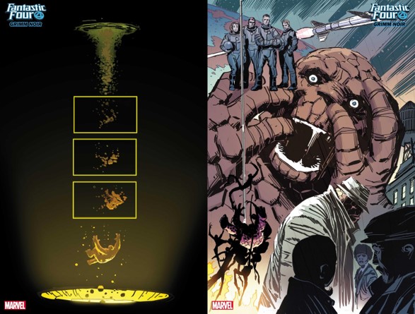 Fantastic Four: Grimm Noir มีการเคลื่อนไหวไม่ชอบมาพากลอยู่ในบ้านฝั่งตรงข้าม เบนกริมม์จึงออกไปดู หลังจากนั้น เขาก็จมดิ่งในห้วงความคิด