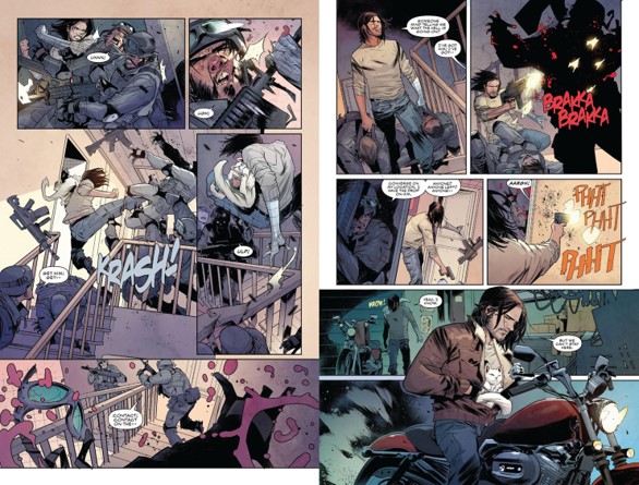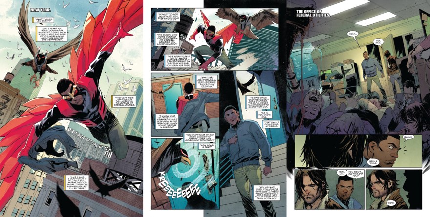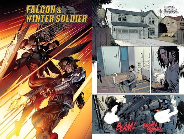 Falcon and Winter Soldier #1 โปรโมทหนักถึงขนาดเอาตัวหนังสือใส่มาให้เลยทีเดียว บั๊คกี้เป็นทาสแมว ส่วนฟาลค่อนเป็นทาสนก ทั้งคู่ไปตามทางของตัวเอง แต่ทางสองเส้นนั้นกลับมาบรรจบกัน ณ ที่เกิดเหตุฆาตกรรมอย่างไม่น่าเชื่อ