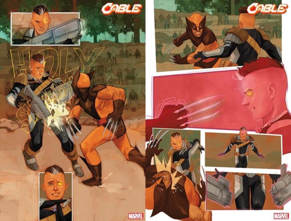 Cable #1 เคเบิ้ลมีเรื่องกับป๋าวูล์ฟ จึงจัดเวทีประลองยุทธ์กันซักกะหน่อย แม้อาวุธปืนจะเทียบไม่ได้กับกรงเล็บอะดาแมนเที่ยมอันแหลมคม แต่เคเบิ้ลก็ยังมีเทเลคิเนซิสอยู่