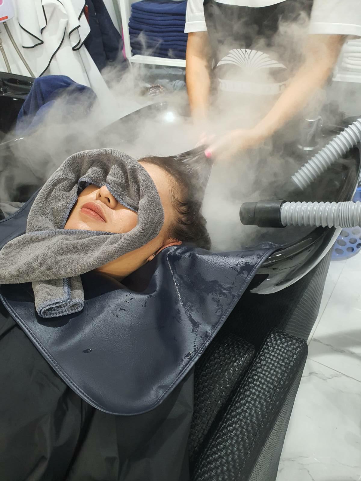 นั่นคือ deep layer treatment ช่างบอกว่าจะเป็นการบำรุงและเคลือบผมด้วยฟลูออไรด์ ตอนทำสบายมาก แล้วช่างก็นวดดีมากกก นวดดีกว่าไปนวดในสปาอีก ถ้าสปาเลือกแพคเกจนวดหัวก็ยังไท่สบายเท่าที่นี่เลย แถมถ้านวดสปาก็ต้องสนะผมเองไปอีก แต่ที่นี่สบายหัววพร้อมผมสวยไปเลยทีเดียวจบ เพิ่งมาดูรูปก็เพิ่งเห็นว่าทำไมเครื่องมือดูเยอะแยะอะไรเบอร์นั้น แต่ไม่เป็นไร เราชอบความอลังการ 555