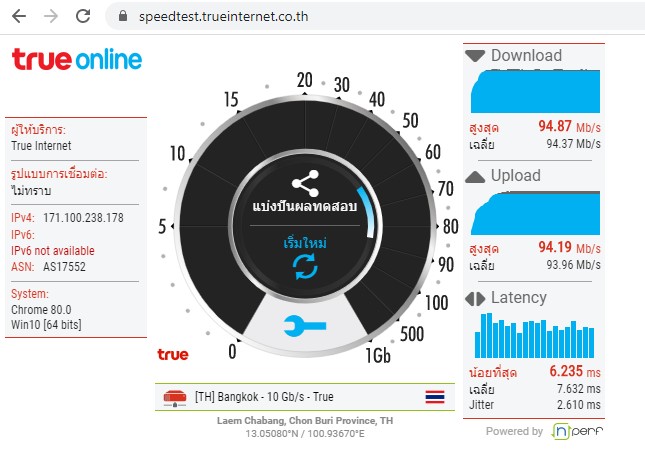 และนัดช่างมาติดตั้งให้วันนี้ หลังจากติดตั้งเสร็จ ผมได้ลองเช็คสปีดเน็ต
