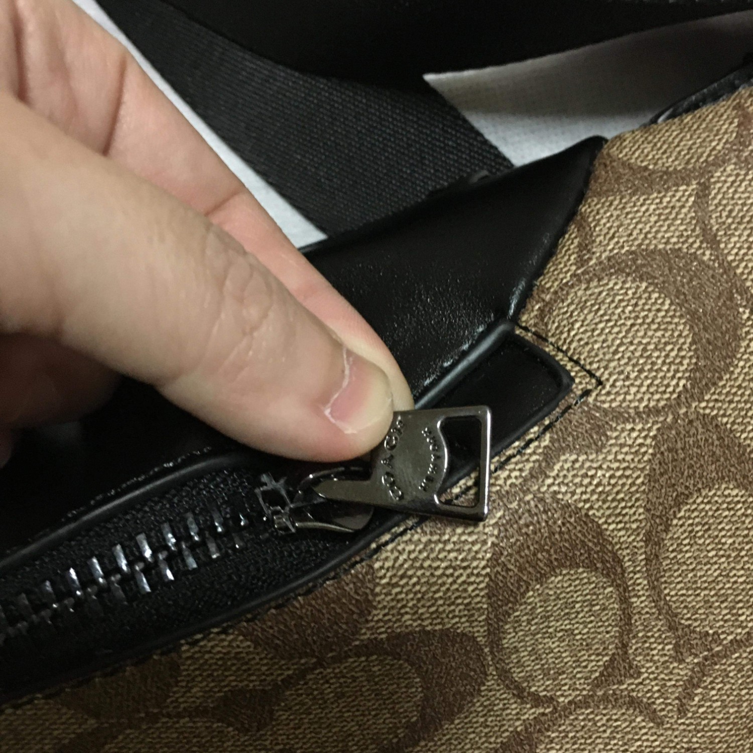เราซื้อกระเป๋า coach จากเพจ คล้องมือ bouble zip ไซส์ L 7 นิ้ว คอนแรกร้านบอกรุ่นนี้ตรงยี่ห้อจะเป็นแบบปั๊ม แต่พอได้รับมาดันเป็นแบบอะไหล่ ซึ่งไม่ตรงกับที่ร้านพูดตอนแรก เราเลยเอ๊ะใจ ดูหลายๆ อย่าง ตรงห่วงต