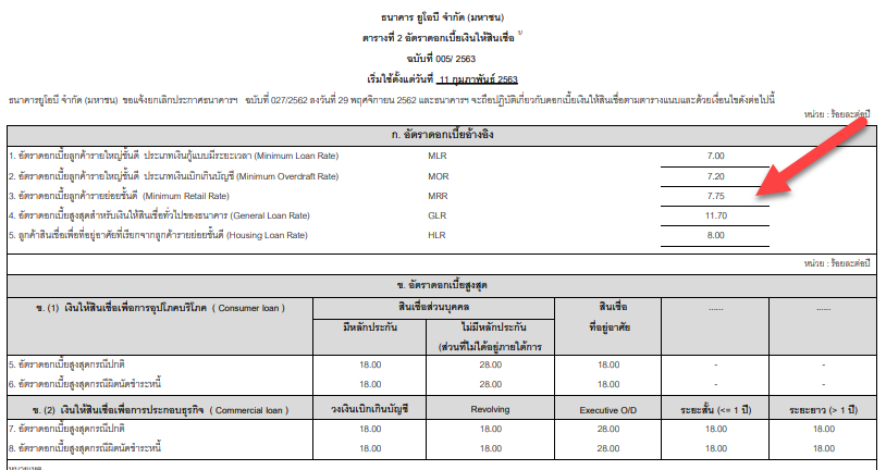 สินเชื่อบ้าน UOB ไม่ลดดอกเบี้ย MRR ตามดอกเบี้ยธนาคารแห่งประเทศไทย แบบนี้ผิดปกติไหมครับ