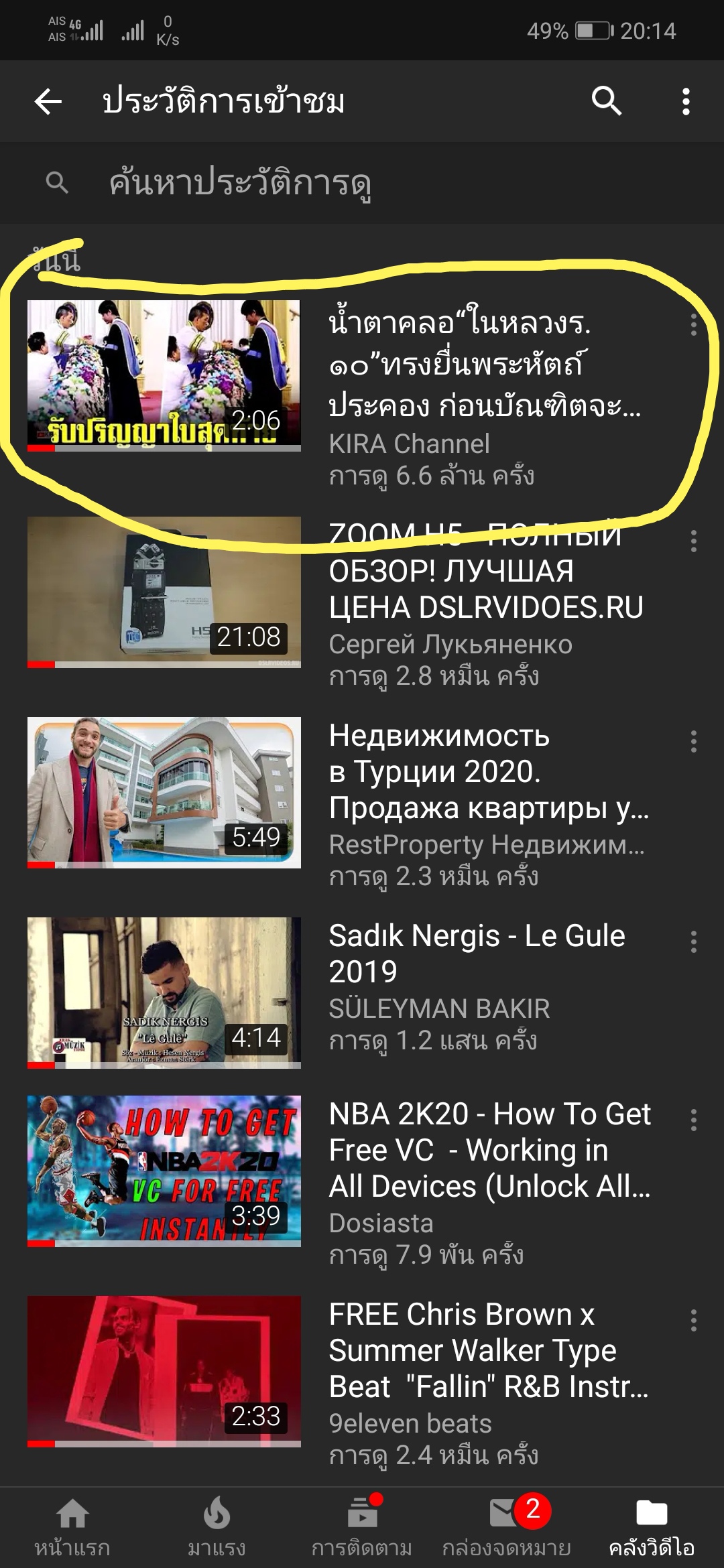 ยูทูปมีประวัติการดูขึ้นมาเอง Youtube history