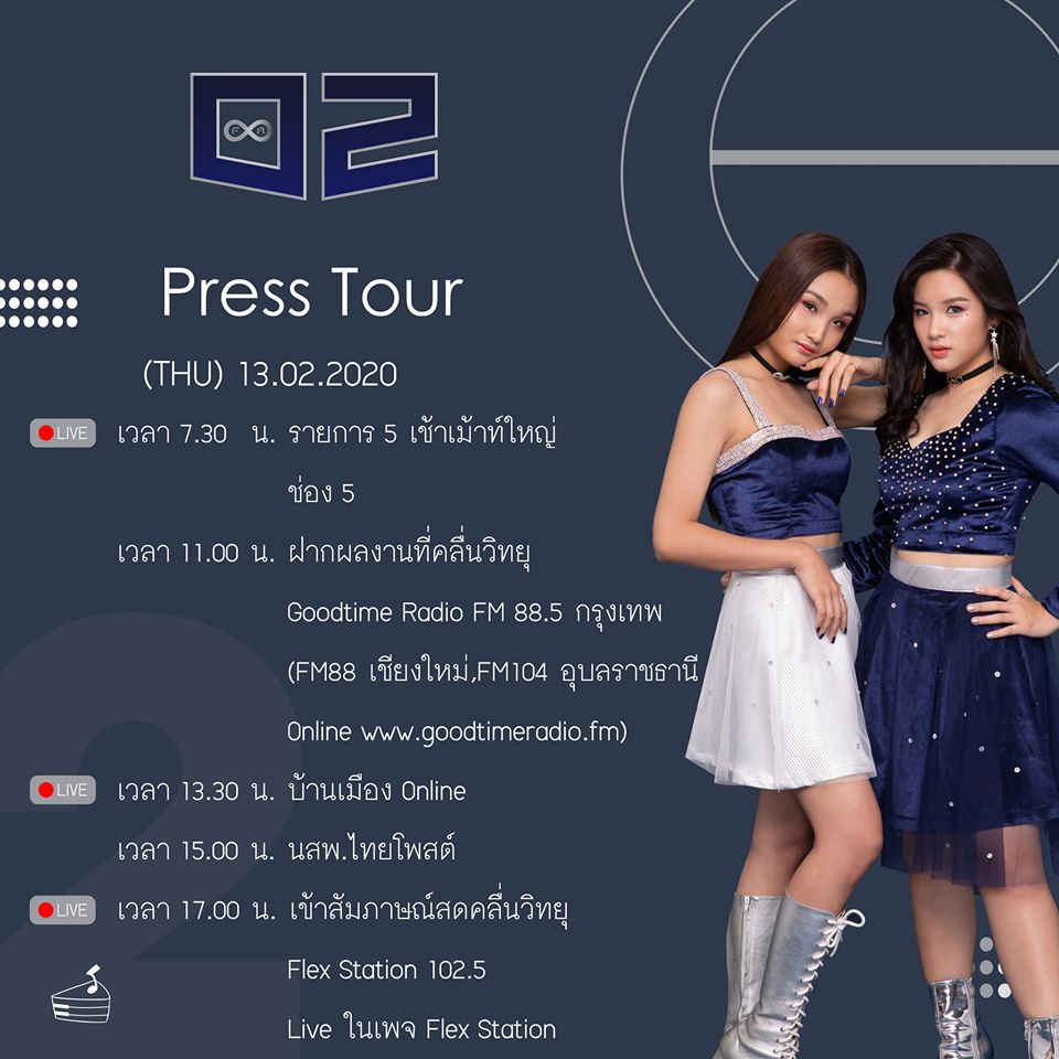 ตารางเดินสายโปรโมทซิงเกิ้ลแรก "NOT MY O2" ของดูโอ้สาว O2 จ้าา