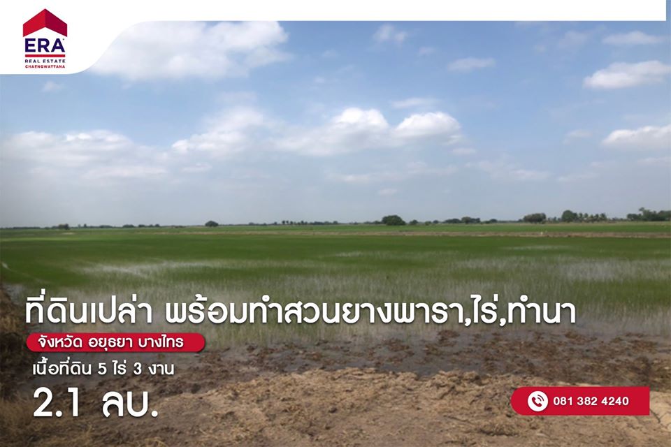 ขายที่ดิน 5 ไร่ 3 งาน 94 ตารางวา อ.บางไทร จ. พระนครศรีอยุธยา พร้อมทำสวนยางพารา,ไร่,ทำนา (พร้อมผู้เช่า) ใ