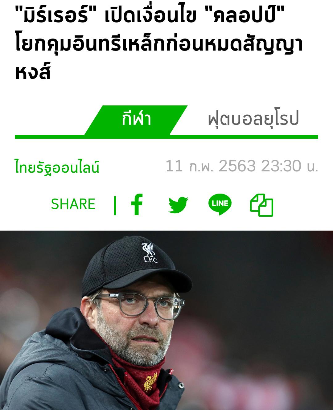 กุนซือชาวเยอรมันรายนี้เพิ่งขยายสัญญากับทัพหงส์แดงออกไปถึงปี 2024 แต่ไม่ได้หมายความว่าเจ้าตัวจะอยู่จนครบสัญญาดังกล่าว จึงเป็นเหตุผลที่ทำให้ มิร์เรอร์ สื่อดังแดนผู้ดีออกมาเผยถึงเงื่อนไขที่ เจอร์เกน คลอปป์ ตกลงกับบอร์ดลิเวอร์พูลไว้ในช่วงก่อนจรดปากกาต่อสัญญา