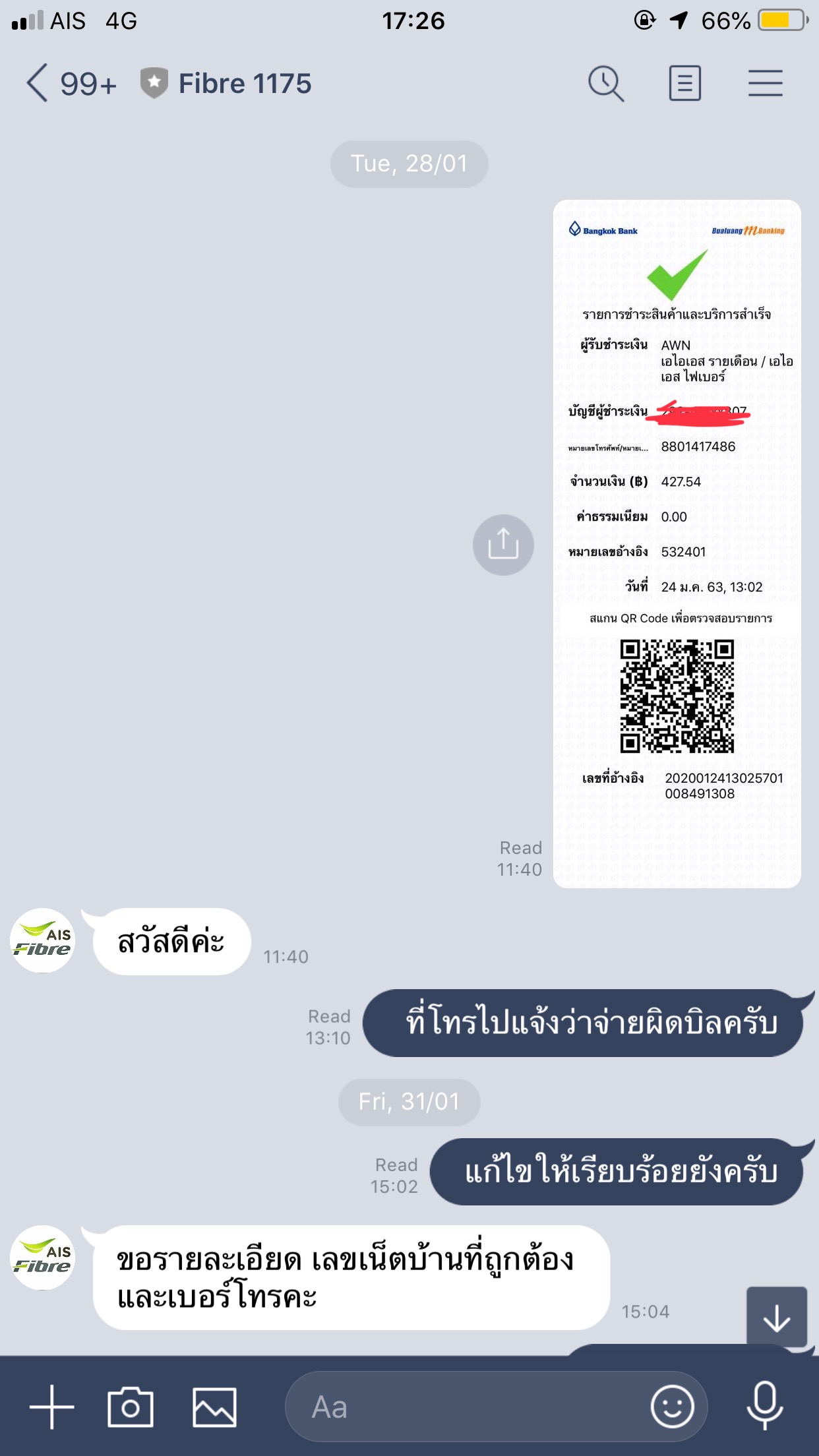 มารู้อีกทีตอนais โทรมาทวงอีกรอบจึงได้เช็คทางจนท.จึงให้ส่หลักฐานไปทางLINE