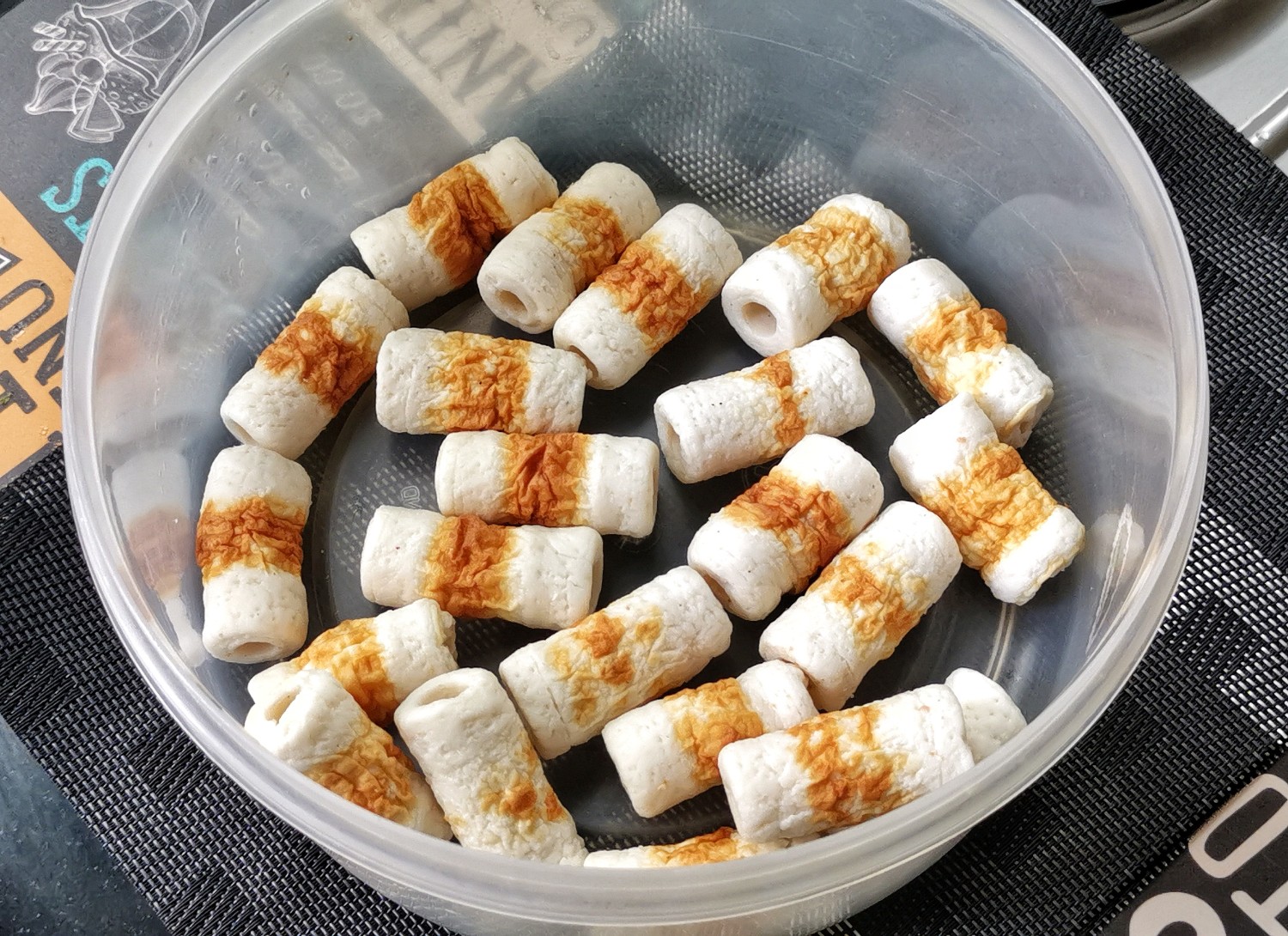 - น้ำหมึกหลอดลงไปคลุก และ น้ำไปคลุกเกล็ดขนมปังให้ทั่ว