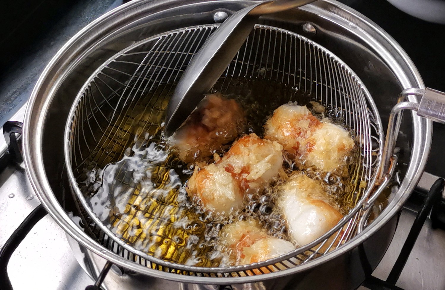 - นำลงทอดในน้ำมันร้อนจนกว่าจะสุก