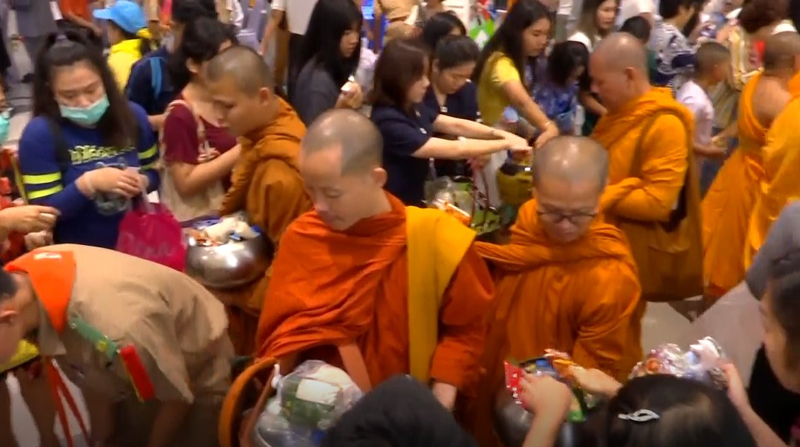 ภาพการตักบาตรที่ โคราช เทอร์มิเนอร์ 21 วันที่ 13 ก.พ 63